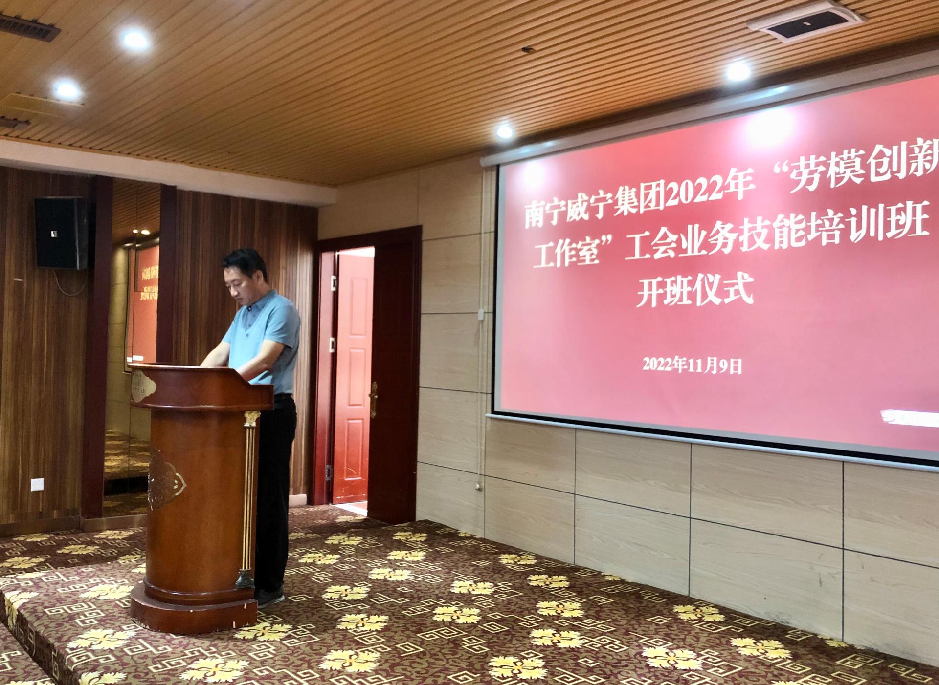 為深刻學(xué)習(xí)領(lǐng)會(huì)黨的二十大的精神,進(jìn)一步提升工會(huì)隊(duì)伍政治理論水平和業(yè)務(wù)能力,2022年11月9日—11日,南寧威寧集團(tuán)工會(huì)在南寧市龍門水都舉辦“勞模創(chuàng)新工作室”工會(huì)業(yè)務(wù)技能培訓(xùn)班,集團(tuán)黨委副書記、工會(huì)主席馬超毅出席開班儀式并講話。