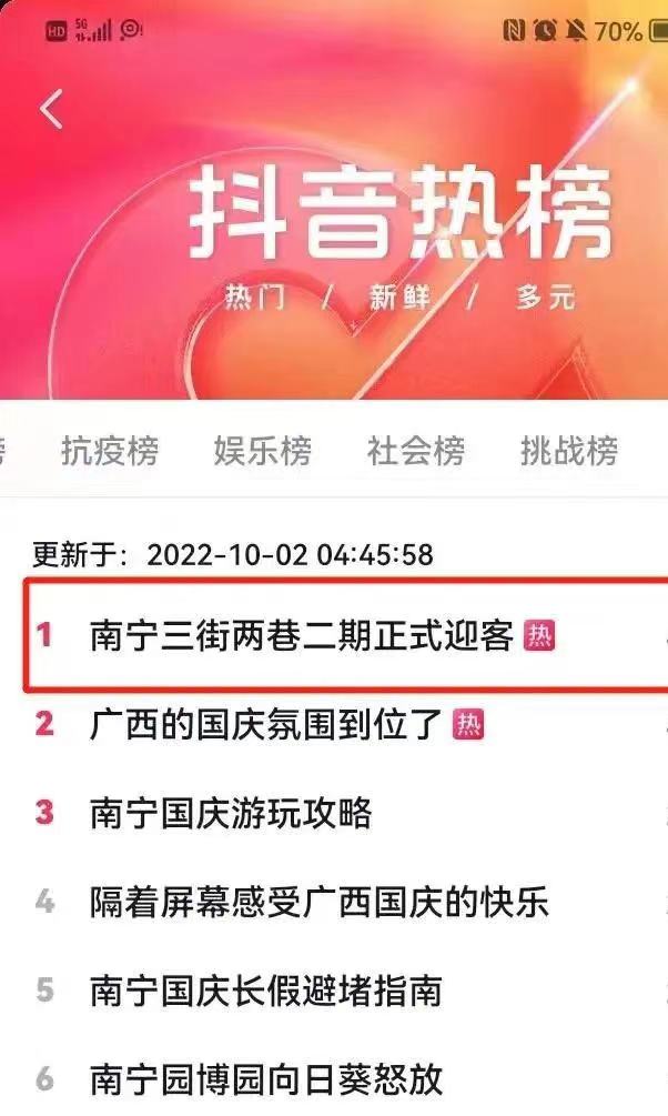 “三街兩巷二期正式迎客”登抖音同城熱搜榜首