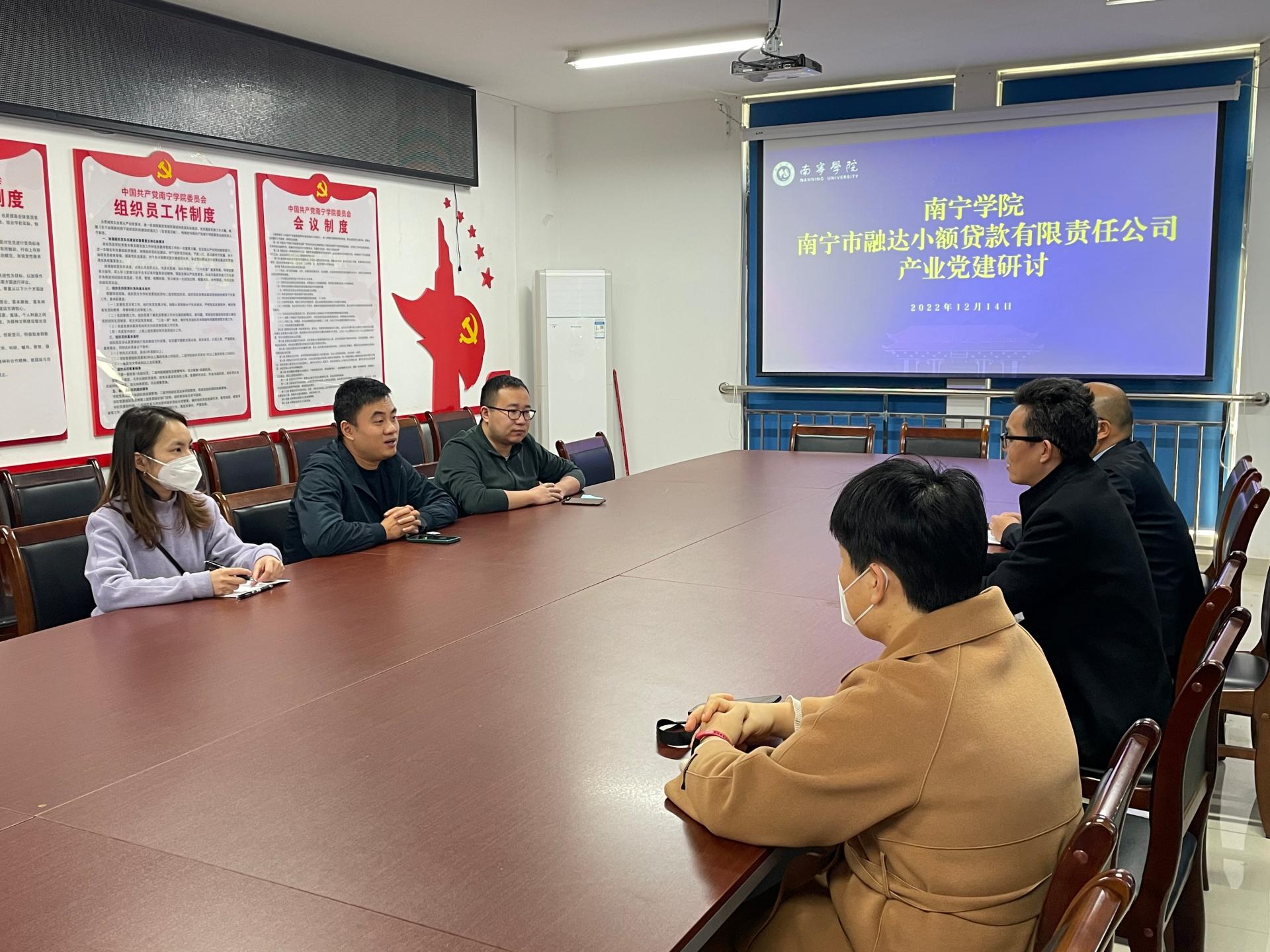 南寧學(xué)院數(shù)字經(jīng)濟學(xué)院與融達(dá)小貸公司開展產(chǎn)業(yè)黨建研討會現(xiàn)場