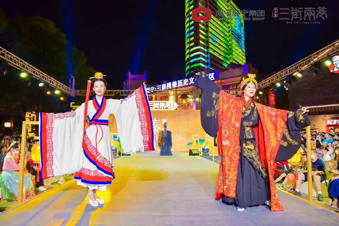 威邕城市運(yùn)營(yíng)開展頭腦風(fēng)暴,創(chuàng)新策劃舉辦活動(dòng)?!傍櫢ER門邕城盛市”三街兩巷二期新街開放暨倉(cāng)西門揭幕儀式系列活動(dòng)、三街兩巷新春嘉年華沉浸式國(guó)風(fēng)系列活動(dòng)、二期開街活動(dòng)暨首屆國(guó)風(fēng)文化節(jié)等大型主題活動(dòng)共計(jì)10余次,得到中央廣播電視總臺(tái)、廣西日?qǐng)?bào)、廣西電視臺(tái)、南寧市主流媒體等廣泛報(bào)道,獲得社會(huì)各界與廣大游客的廣泛關(guān)注。國(guó)慶期間,“三街兩巷首屆國(guó)風(fēng)文化節(jié)”活動(dòng),游客接待量超70萬(wàn)人次,同比2021年國(guó)慶假期增長(zhǎng)40%,營(yíng)業(yè)額超5000萬(wàn)元,同比2021年國(guó)慶假期增長(zhǎng)317%。主題活動(dòng)的成功舉辦,促進(jìn)了街區(qū)人流量、消費(fèi)量“雙量”提升,極大的提升了商戶的經(jīng)營(yíng)信心,促進(jìn)了招商工作的推進(jìn)。(圖5.三街兩巷2022年國(guó)慶活動(dòng))