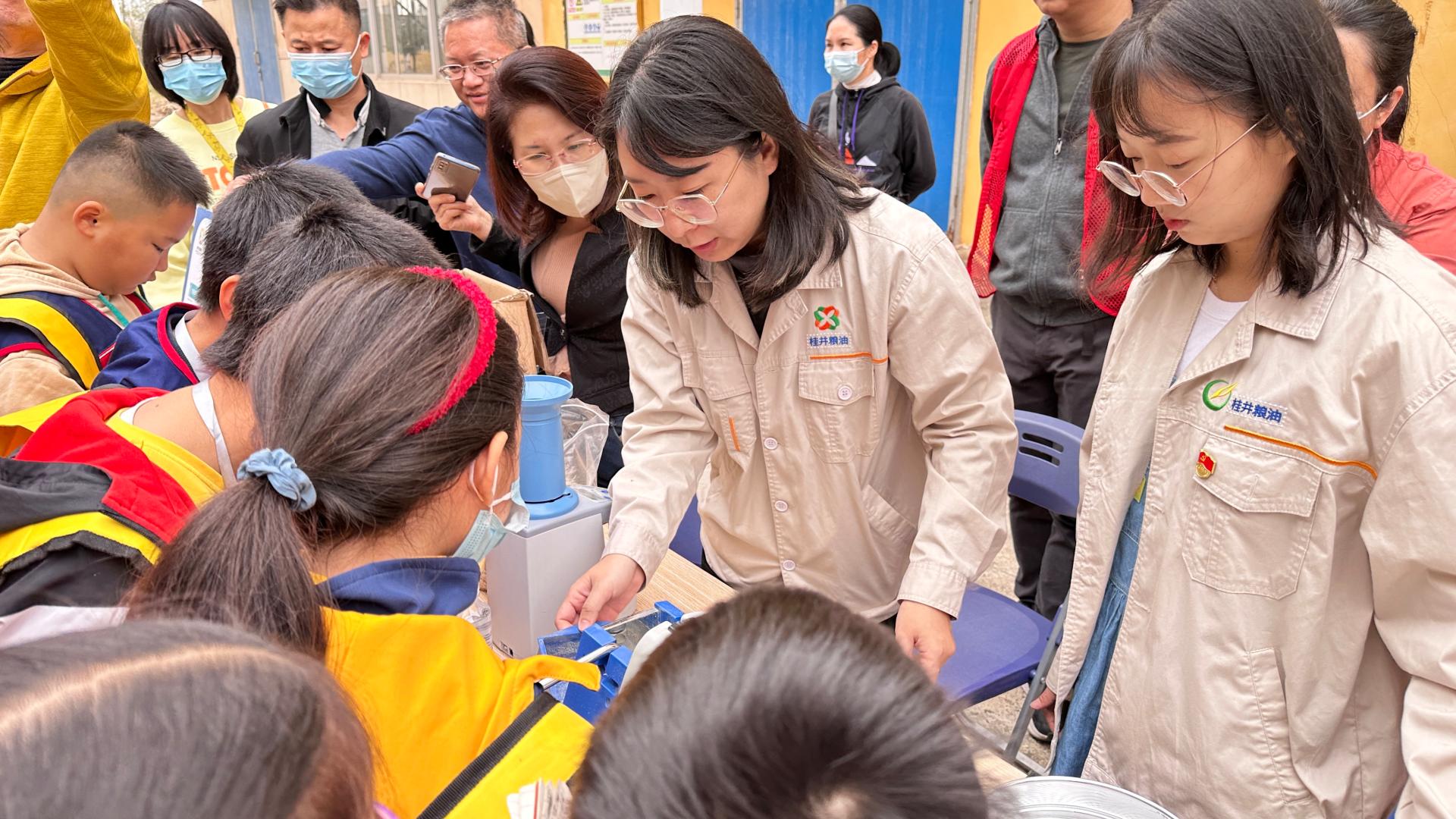 在南寧市儲備糧公司五象糧庫,小記者們在講解員的帶領(lǐng)下,實(shí)地參觀了大米加工生產(chǎn)車間,認(rèn)真了解稻谷脫殼、色選、拋光等生產(chǎn)工藝流程,并學(xué)習(xí)如何辨別常見的大米品種、米飯賞味等有關(guān)知識。同時,小記者們還積極參與實(shí)踐活動,動手操作米篩挑選優(yōu)質(zhì)米粒,更直觀地了解雜質(zhì)、不完善粒等糧食指標(biāo)的具體表現(xiàn),切身感受“放心糧油”產(chǎn)品的高標(biāo)準(zhǔn)質(zhì)量和“粒粒皆辛苦”的愛糧精神。