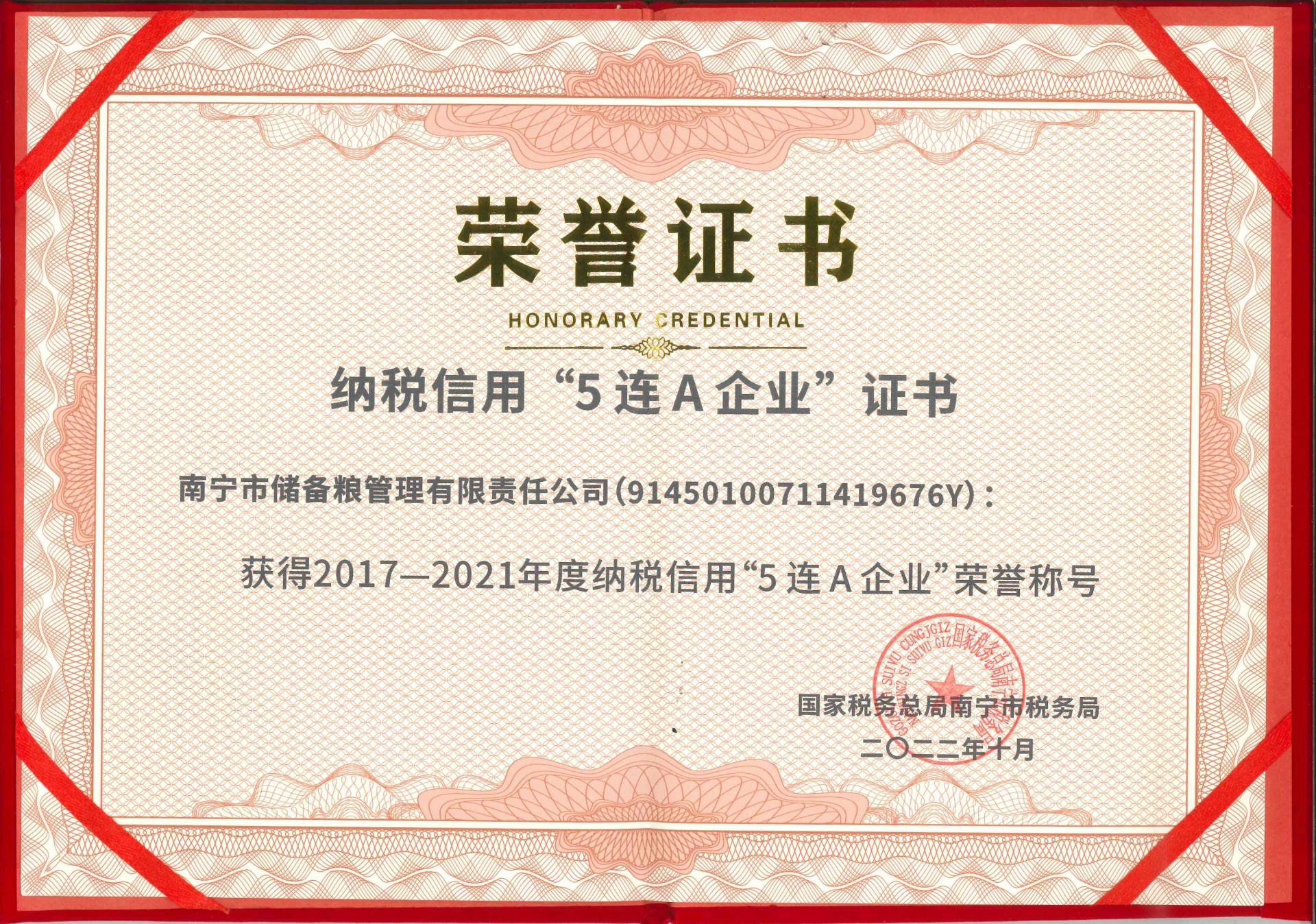 南寧市儲備糧公司榮獲“5連A”企業(yè)稱號,不僅是稅務(wù)機關(guān)對儲備糧公司依法納稅、誠信經(jīng)營、積極履行社會責任的高度肯定,也彰顯了良好的企業(yè)形象,更為儲備糧公司走高質(zhì)量發(fā)展之路提供了強有力的支撐。