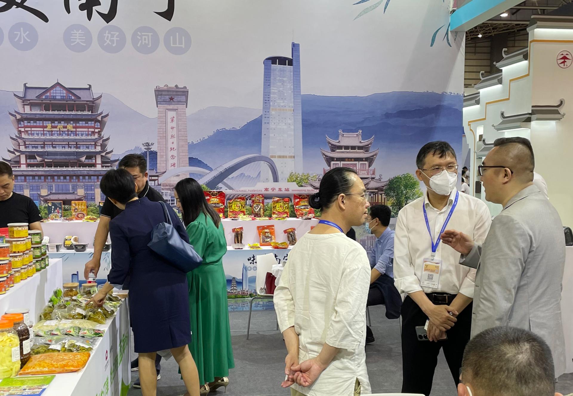 展會(huì)現(xiàn)場(chǎng),南寧威鏈云公司與全國(guó)各地參展商深入溝通交流,詳細(xì)了解全國(guó)預(yù)制菜行業(yè)發(fā)展情況,積極學(xué)習(xí)業(yè)內(nèi)頭部企業(yè)管理理念和發(fā)展思路,并向來(lái)訪參展商及觀眾介紹南寧威鏈云產(chǎn)業(yè)園建設(shè)規(guī)劃、運(yùn)營(yíng)模式及區(qū)位優(yōu)勢(shì),為助推企業(yè)間互惠合作打下良好基礎(chǔ)。