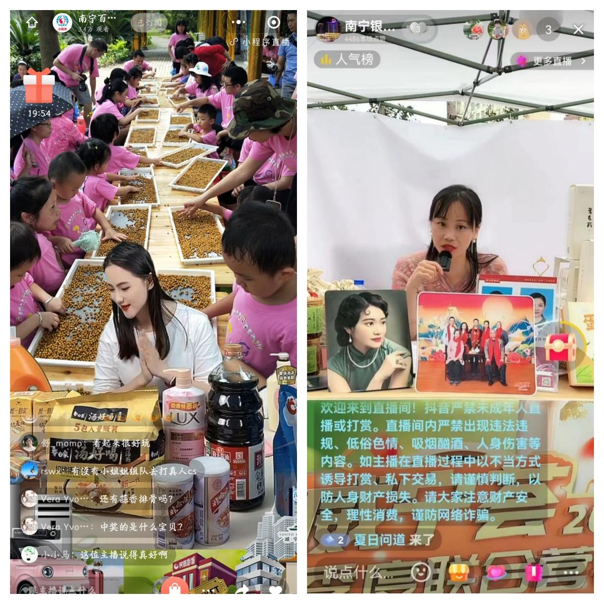 3月24日晚,酒店公司婧婧主播進(jìn)入南寧百貨直播間,介紹威寧薈酒店專場好物,超值好禮送不停,主播和粉絲實(shí)時(shí)互動,氣氛熱烈。此外,銀河公司更是把抖音直播間搬到線下聯(lián)展市集里,讓粉絲足不出戶就能看到漢服巡游、感受到市集的熱鬧氛圍。
