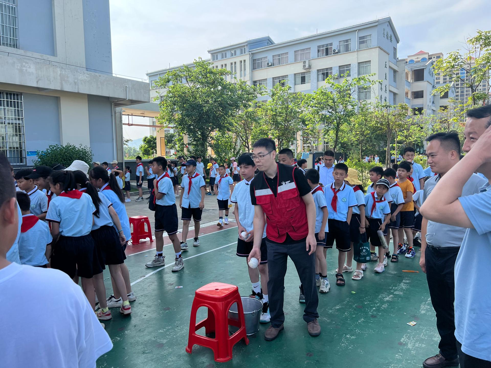 在各活動(dòng)現(xiàn)場(chǎng),少先隊(duì)員們熱情地為隆安、賓陽分公司員工代表戴上鮮艷的紅領(lǐng)巾,并帶領(lǐng)各分公司員工代表一起參與拋紙團(tuán)、定點(diǎn)投籃及運(yùn)球競(jìng)賽等趣味小游戲,或是二人成組、五人成隊(duì),或是你追我趕、歡笑盈盈,現(xiàn)場(chǎng)一片歡樂、祥和的節(jié)日氛圍。