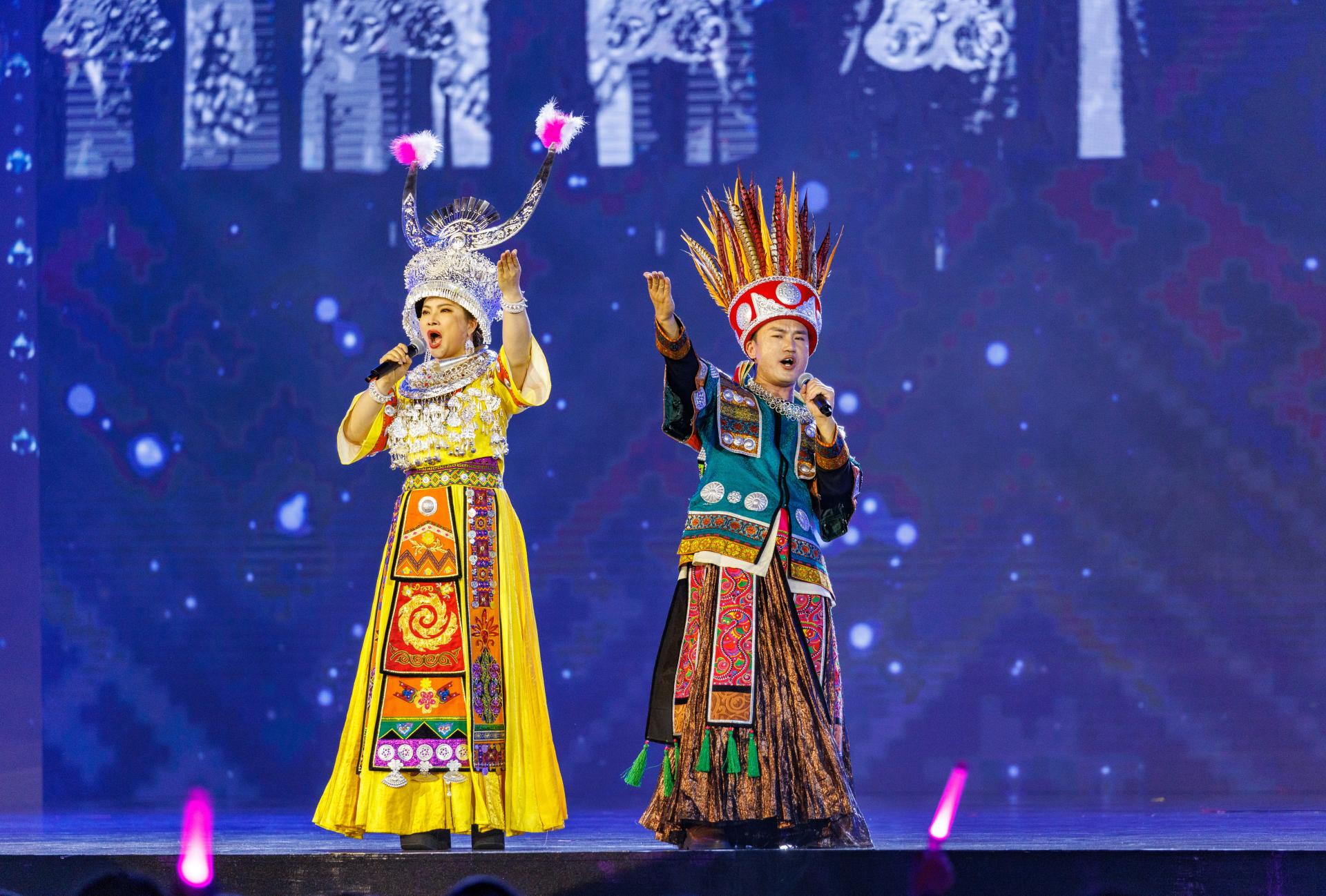 當(dāng)晚的演出上,不僅有壯語(yǔ)歌曲《唄儂情深》、新民歌《連心歌》、京族民歌《洗貝歌》、云南羅羅拔四團(tuán)隊(duì)帶來(lái)的民俗大秀《跳菜》等極具地域民族特色的演出,也有來(lái)自印度尼西亞、馬來(lái)西亞、俄羅斯等國(guó)的歌者帶來(lái)東盟乃至“一帶一路”沿線國(guó)家的經(jīng)典民歌。貴州游方組合的《對(duì)歌對(duì)到日落坡》,壯族民歌《天上星星伴月亮》等作品把傳統(tǒng)藝術(shù)與現(xiàn)代表現(xiàn)手法完美融合,唱出了“新民歌”的無(wú)窮魅力;2022《中國(guó)好聲音》全國(guó)總冠軍梁玉瑩、擁有逾四千萬(wàn)粉絲的歌手唐藝以及額爾古納樂(lè)隊(duì)等傾情獻(xiàn)唱,吸引了更多年輕觀眾的矚目;南寧市天桃實(shí)驗(yàn)學(xué)校的孩子們用清澈的嗓音唱出新時(shí)代八桂好少年的風(fēng)范,贏得現(xiàn)場(chǎng)觀眾陣陣掌聲。