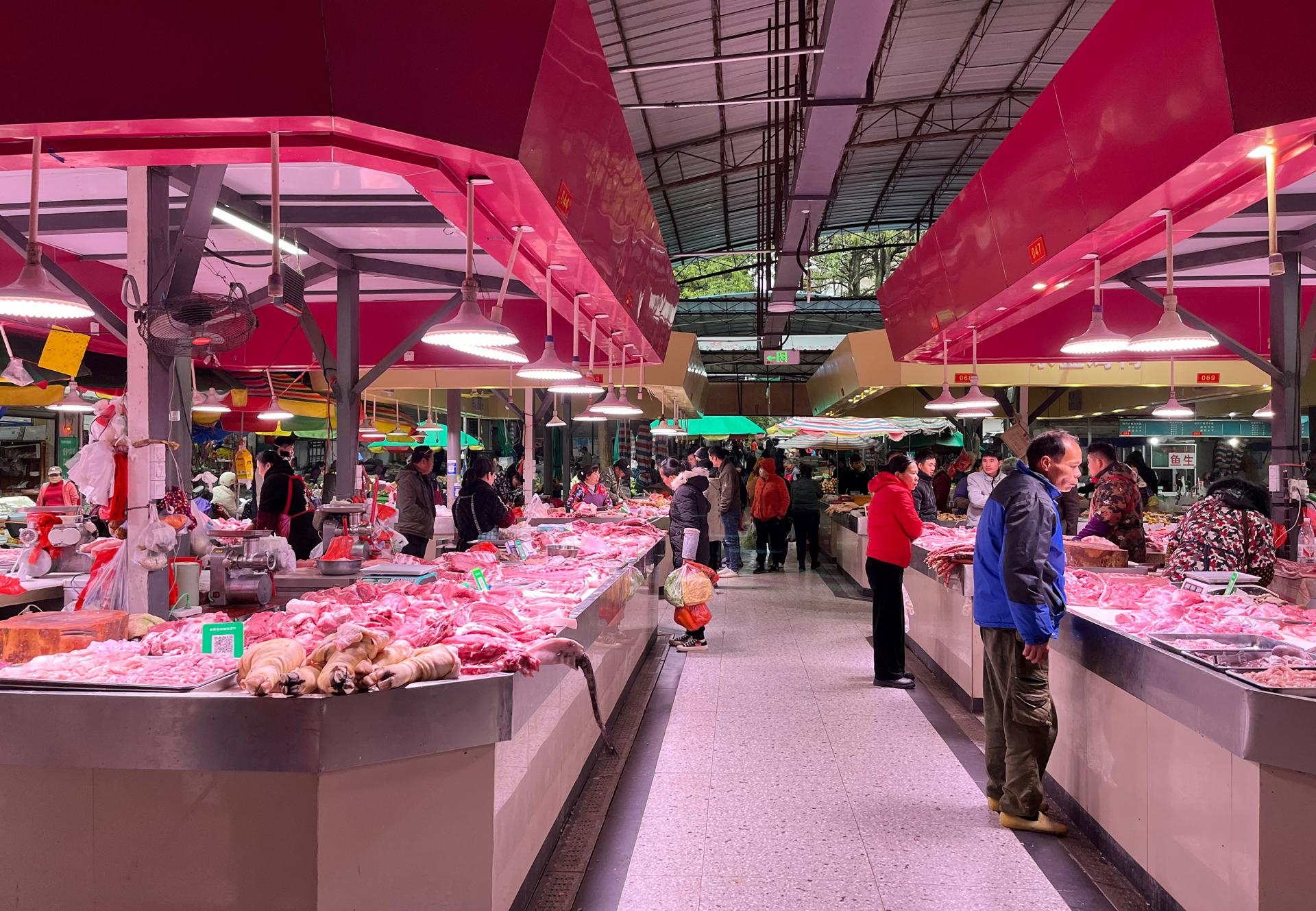 在南寧市交易場、那元果菜市場等農(nóng)貿(mào)市場,近500種新鮮蔬菜、米面糧油、各色水果、干貨及各類生活用品擺放整齊、琳瑯滿目、應有盡有,生鮮區(qū)內(nèi)豬肉、禽類、水產(chǎn)品等種類豐富、供應充足,市民群眾在各攤位前絡繹不絕挑選和購買所需菜品。
