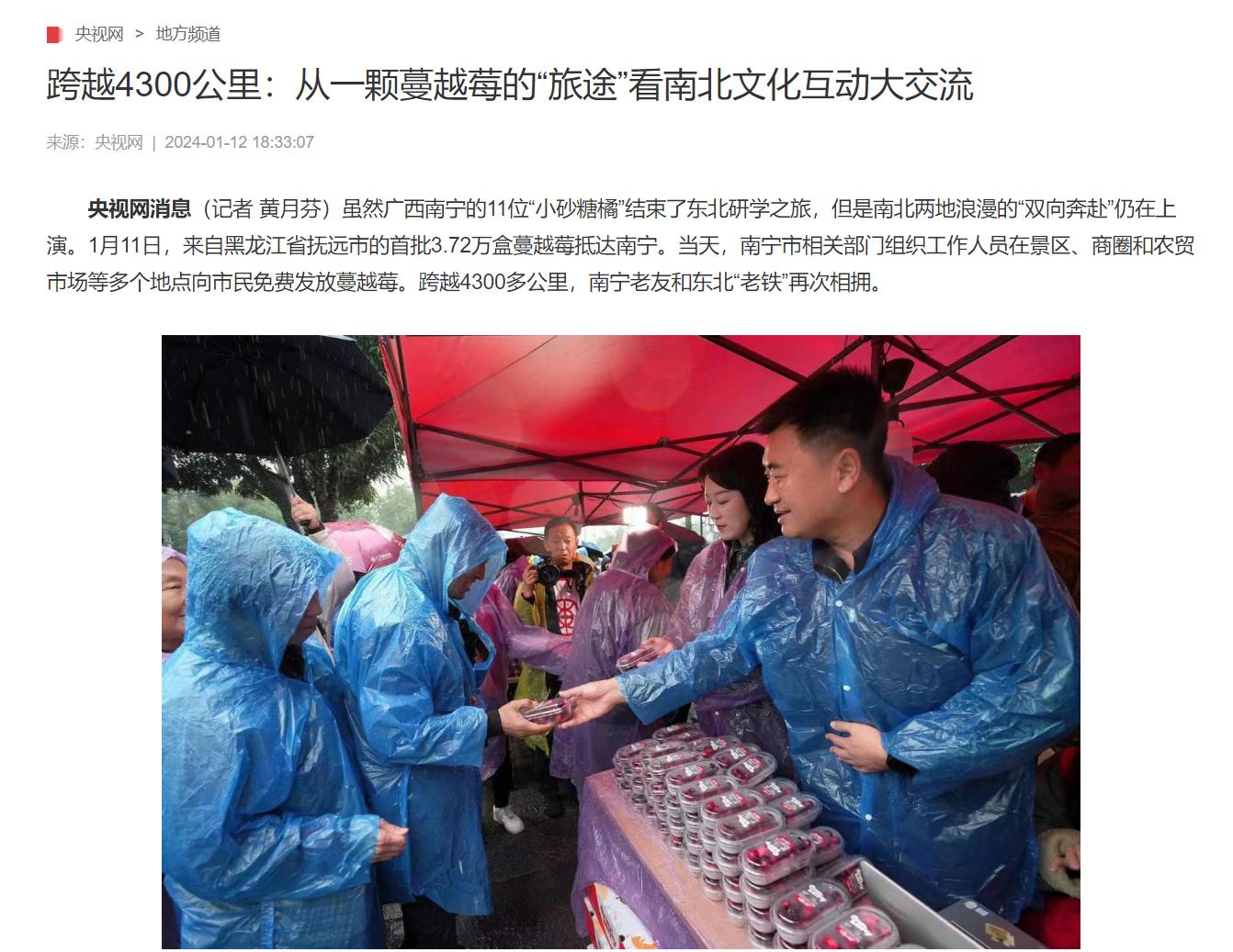 新年伊始,“蔓越莓”和“砂糖橘”成為了全國人民最為關注的“熱詞”,從黑龍江到廣西,這場橫跨4000多公里的雙向奔赴,構成一幅跨越山川湖海的感人畫卷。2024年1月11日-14日,第一批來自黑龍江的蔓越莓在邕州古城·三街兩巷進行發(fā)放,邕州古城·三街兩巷再次成為了全國人民關注的話題焦點。邕州古城·三街兩巷用一幕幕的“莓”好時刻,傳遞著東北“老鐵”與南寧“老友”的深厚情誼,構建兩地人文交融新橋梁。