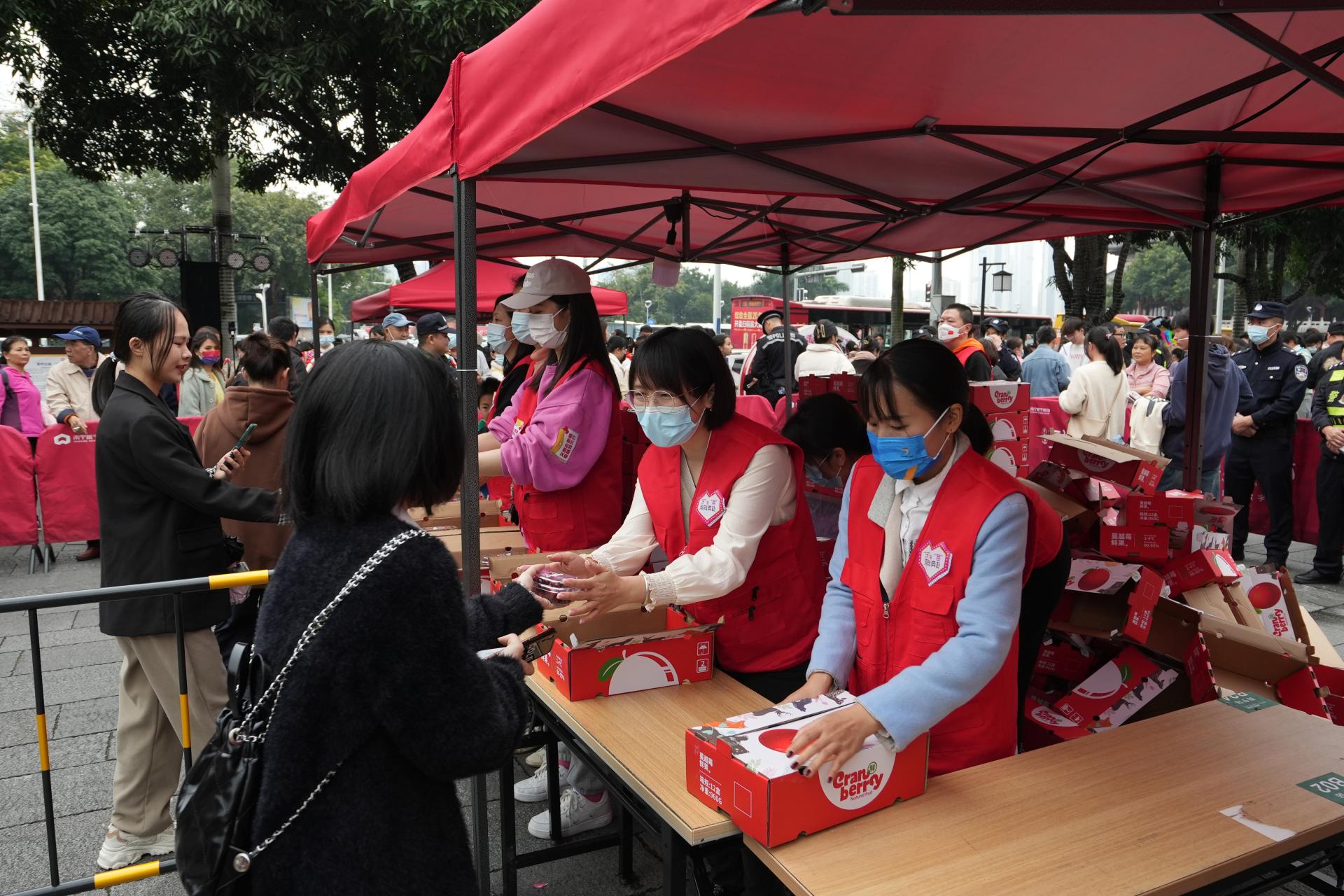 志愿者開展蔓越莓發(fā)放工作