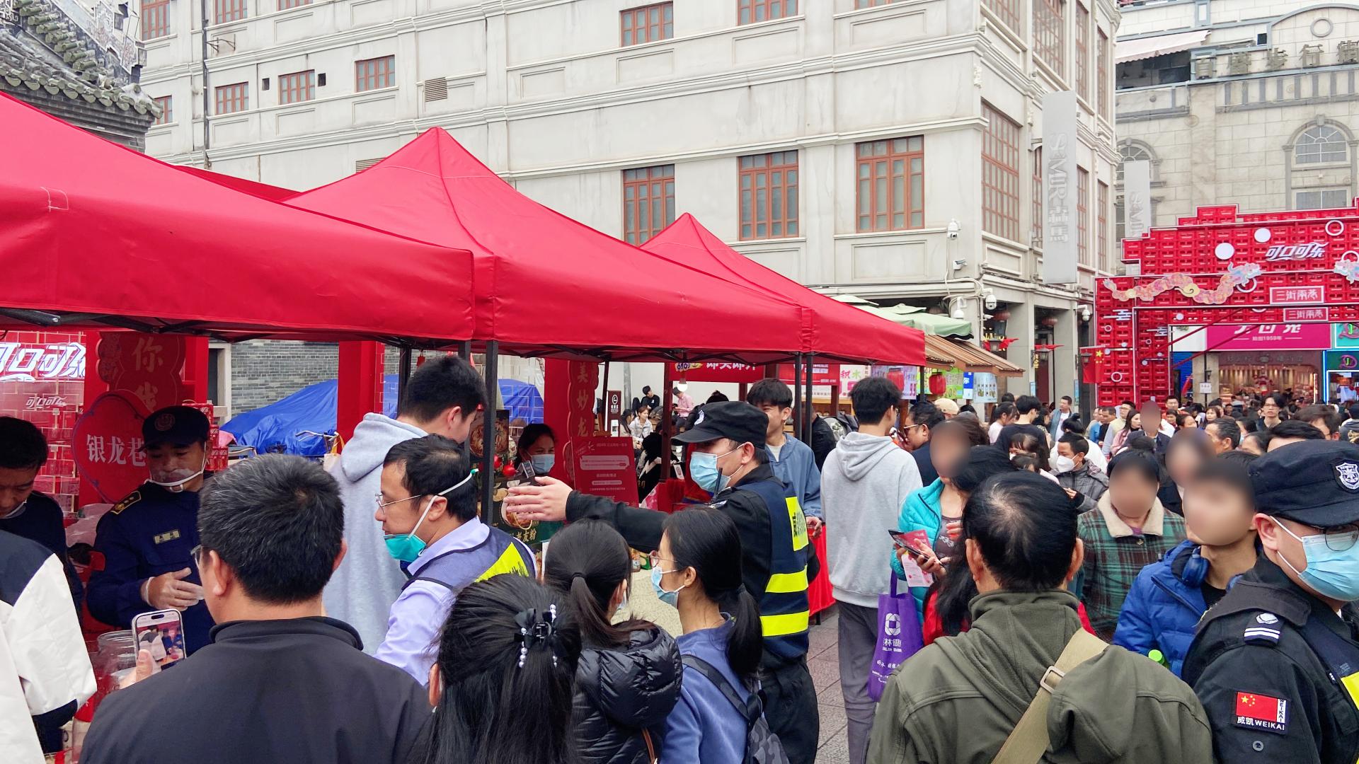 雨水澆不滅南寧市民的熱情。在1月11日—1月14日的四天派發(fā)活動時間里,大批市民抵達邕州古城·三街兩巷,高峰期現(xiàn)場客流量高達近1.5萬人次,車流量近3千輛次,為了確保邕州古城·三街兩巷發(fā)放現(xiàn)場安全到位、氛圍布置到位,威邕城市運營集團組織人手通宵完成活動物料進場及布置工作;面對強降雨天氣,公司迅速作出反應,組織志愿者為市民游客提供“愛心雨衣”,第一時間熬煮暖心姜茶,通過小小善舉,將暖意傳遞到每個人心底,受到市民群眾一致夸贊;在派發(fā)活動高峰期,針對可預見的客流激增態(tài)勢,公司組織精干人防覆蓋重要點位,增強巡防頻次、密度,嚴防擁擠、推搡、踩踏、走散等意外事件發(fā)生,確保發(fā)放現(xiàn)場安全有序進行。此外,公司還為第一次見到蔓越莓的南寧市民準備了現(xiàn)場試吃點,讓市民群眾了解了蔓越莓多樣化的食用方法,并解鎖蔓越莓酸嘢的南寧做法。