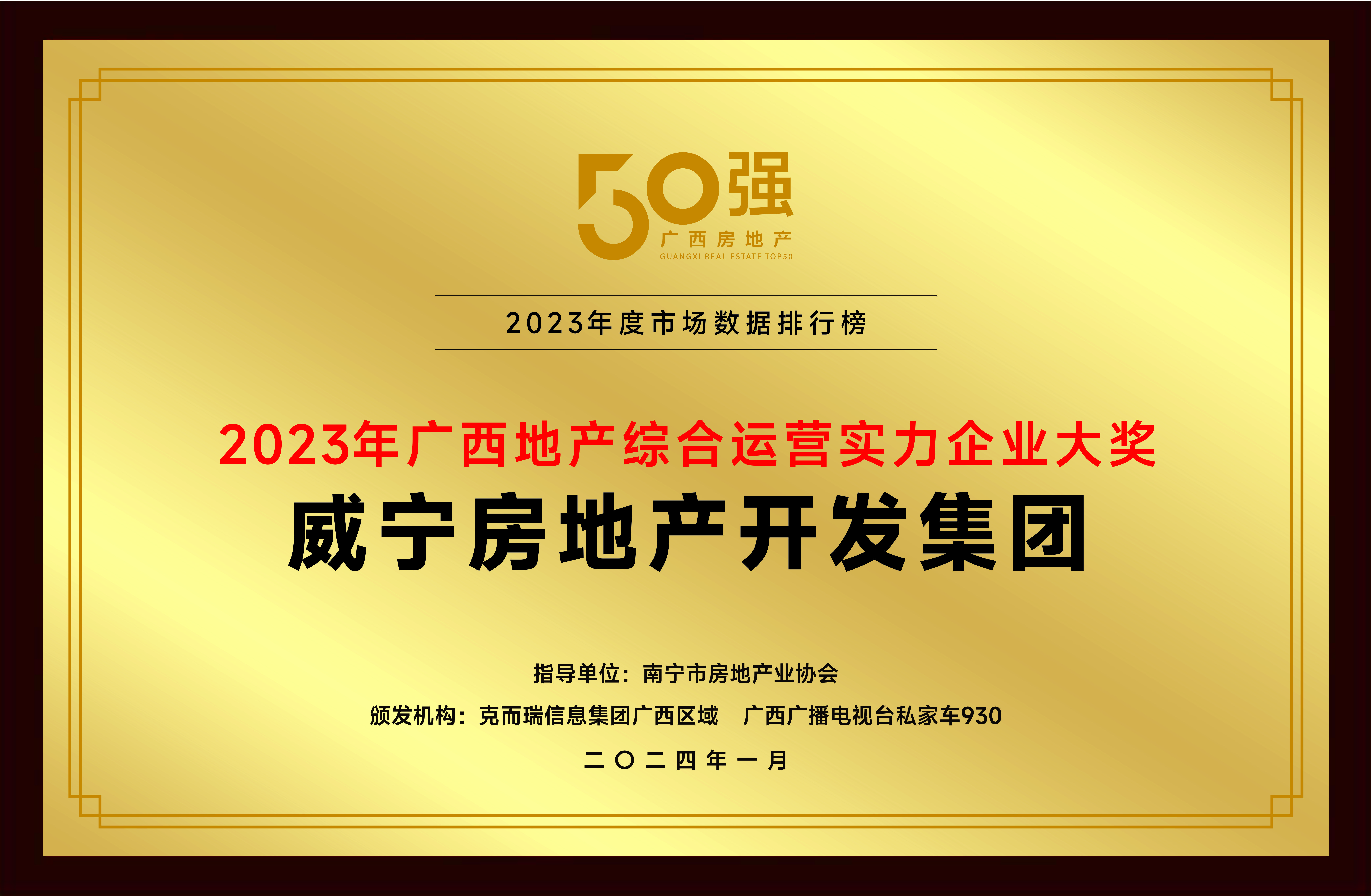 近日,2023廣西房地產(chǎn)行業(yè)盛典暨房地產(chǎn)及物業(yè)管理市場(chǎng)數(shù)據(jù)發(fā)布會(huì)在南寧舉辦。本次盛典行業(yè)“大咖”云集,公信力、引導(dǎo)力凸顯。威寧房地產(chǎn)開(kāi)發(fā)集團(tuán)憑借不俗業(yè)績(jī),在眾多房開(kāi)企業(yè)中脫穎而出,榮獲六項(xiàng)榮譽(yù)大獎(jiǎng)。