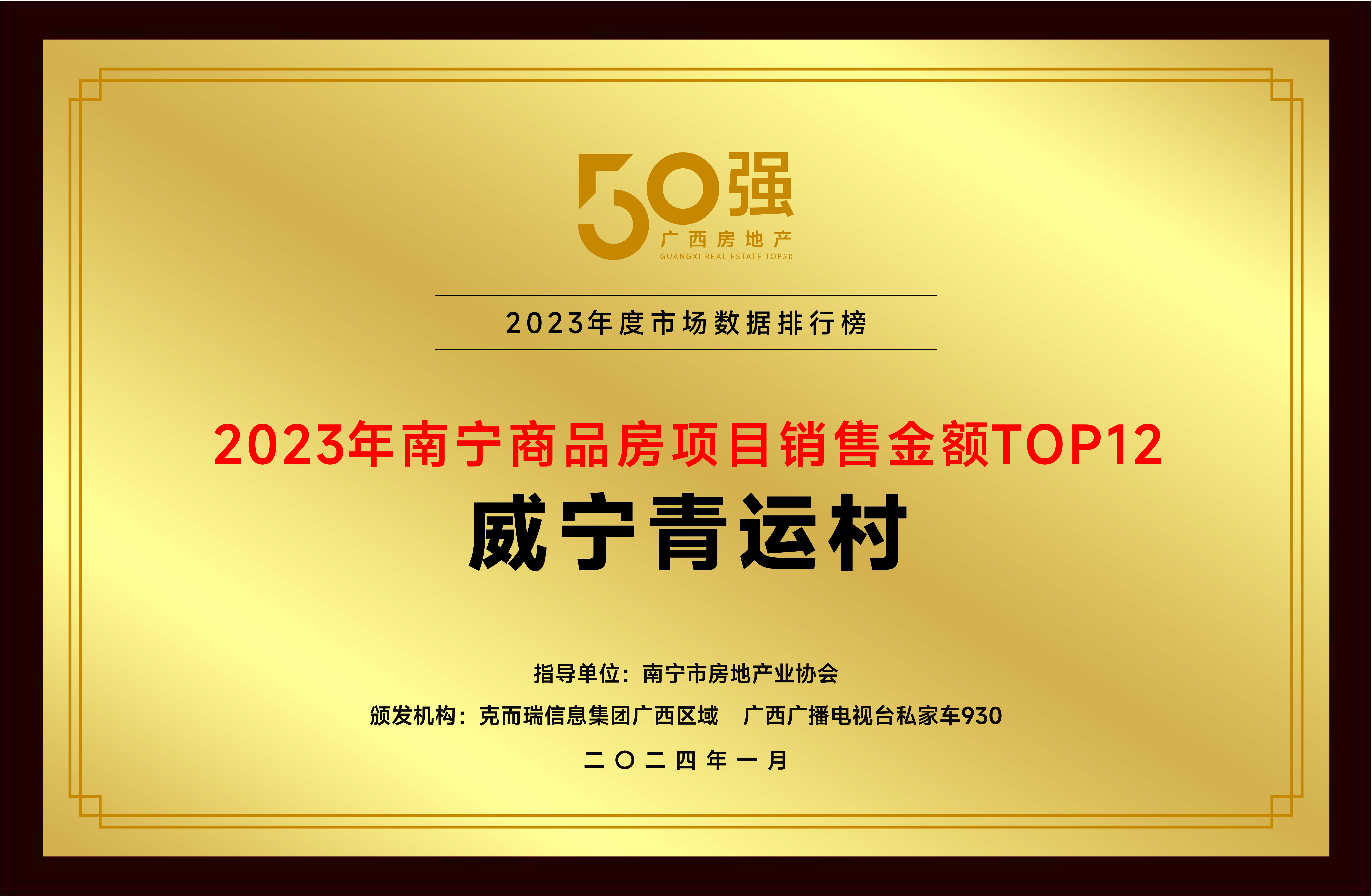 公司所屬項(xiàng)目威寧青運(yùn)村憑借良好的市場(chǎng)口碑,成功脫穎而出,獲“2023年廣西地產(chǎn)品質(zhì)標(biāo)桿項(xiàng)目”“2023年南寧商品房項(xiàng)目銷售金額TOP12”“2023年南寧總部基地板塊商品住宅成交金額、面積、套數(shù)TOP1”大獎(jiǎng),這也印證了威寧青運(yùn)村項(xiàng)目在市場(chǎng)的高關(guān)注度與認(rèn)可度。