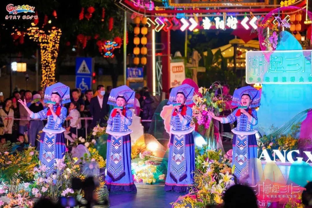 作為廣西“三月三”系列群眾文化活動(dòng)之一,音樂(lè)會(huì)現(xiàn)場(chǎng)還設(shè)置了“山歌迎客”“民歌新唱”“花式竹竿舞”“科目三舞蹈”“廣西有戲”等豐富的民俗文化展示體驗(yàn)活動(dòng)。