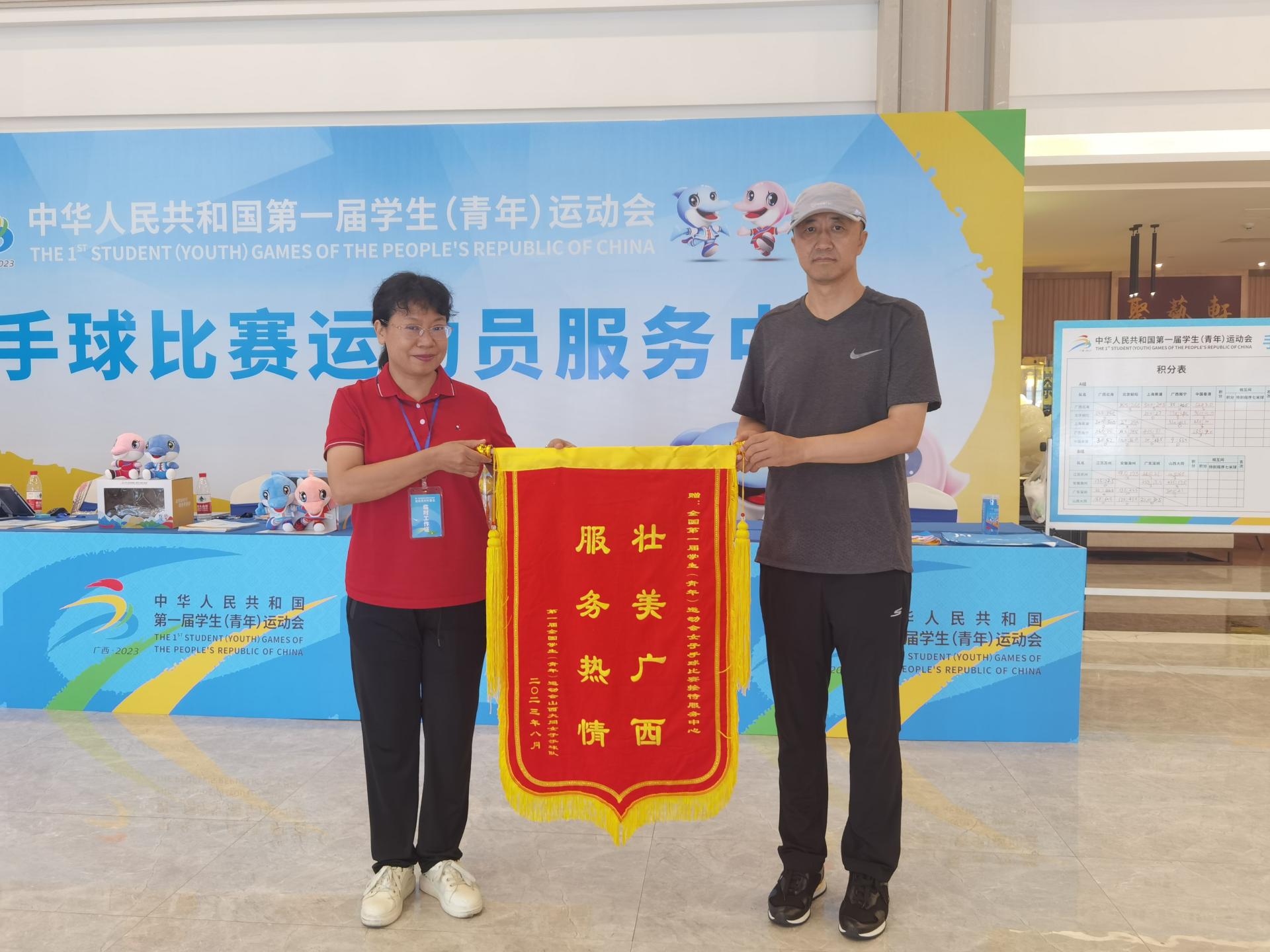 “壯美廣西,服務(wù)熱情”,這是第一屆全國(guó)學(xué)生(青年)運(yùn)動(dòng)會(huì)運(yùn)動(dòng)員村村民委員會(huì)(以下簡(jiǎn)稱:村委會(huì))住宿服務(wù)中心8月17日收到來(lái)自山西大同女子手球隊(duì)贈(zèng)送的錦旗,充分表達(dá)了對(duì)學(xué)青會(huì)服務(wù)保障工作的認(rèn)可。8月16日,山西大同隊(duì)一名女子手球隊(duì)隊(duì)員因過(guò)敏發(fā)燒獨(dú)自在駐村房間休息,而此時(shí)的山西大同隊(duì)正在南寧學(xué)院賽場(chǎng)進(jìn)行手球比賽,無(wú)人照顧。住宿服務(wù)中心在收到信息后立即趕往該運(yùn)動(dòng)員房間,將其送至駐地醫(yī)務(wù)室及定點(diǎn)醫(yī)院就診。當(dāng)...