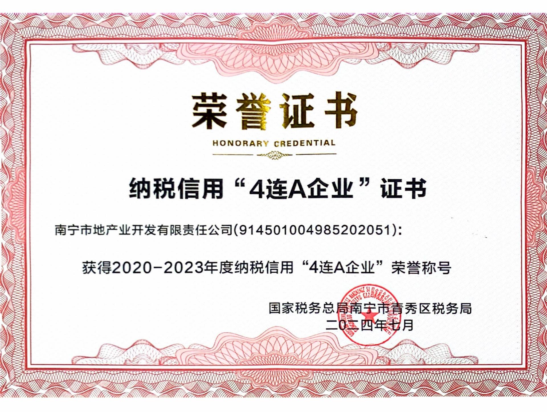 喜報!地產(chǎn)業(yè)公司榮獲2020-2023年度納稅信用“4連A企業(yè)”榮譽(yù)稱號