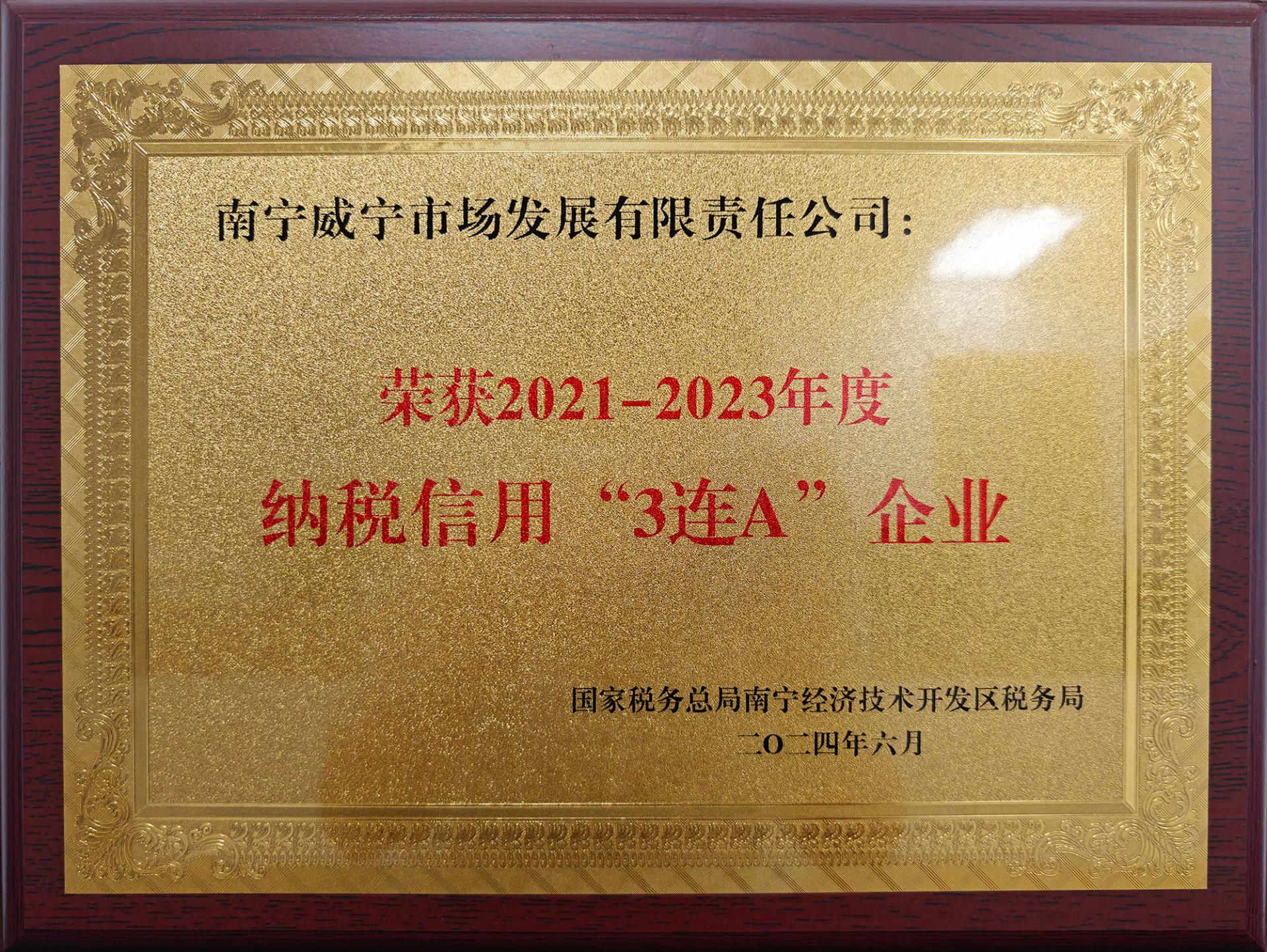 喜訊!威寧市場公司榮獲納稅信用“3連A企業(yè)”榮譽(yù)稱號