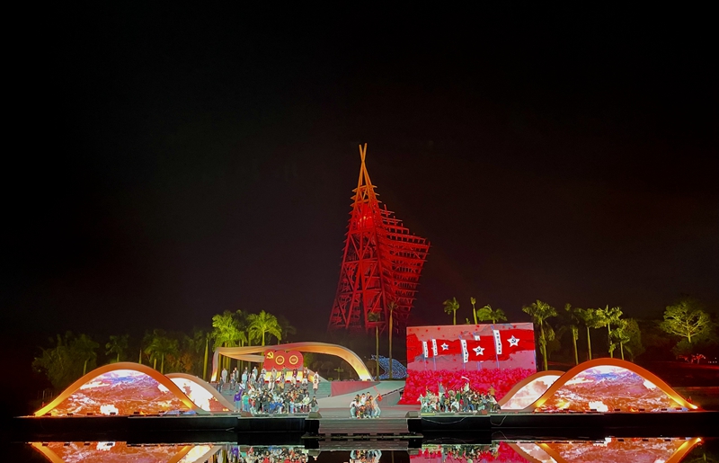 這是一場(chǎng)文旅融合的山水大戲,這是一首綠水青山實(shí)景里的壯鄉(xiāng)贊歌。12月9日晚,南寧市慶祝中國(guó)共產(chǎn)黨成立100周年群眾文化活動(dòng)暨第23屆南寧國(guó)際民歌藝術(shù)節(jié)“大地飛歌·2021”在南寧園博園彩排。