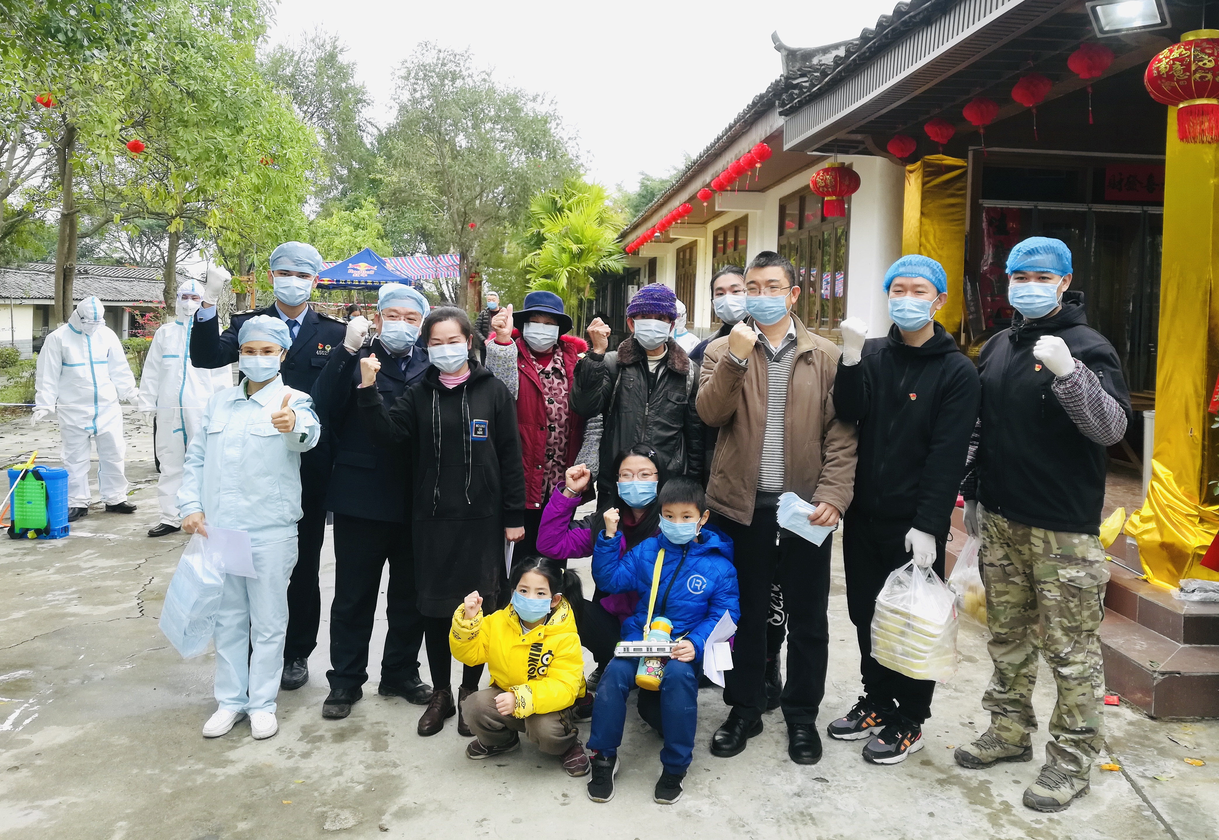 2020年4月26日,生態(tài)園公司在密切接觸者接待點(diǎn)的清零儀式后合影