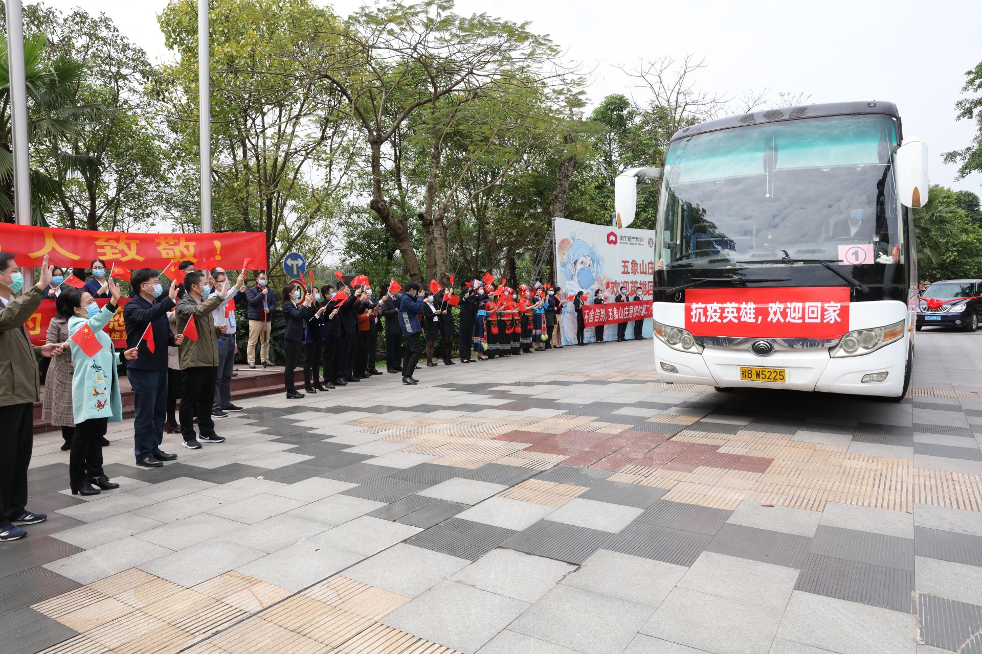 2020年4月7日,威寧酒店公司歡送廣西援鄂抗疫醫(yī)療隊(duì)的醫(yī)護(hù)工作者回家