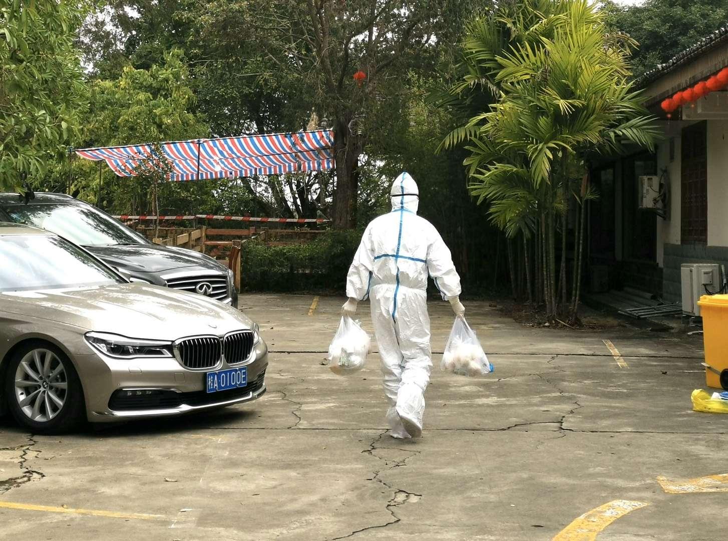 2020年1月24日,鄉(xiāng)村大世界疫情防控工作照——員工為隔離人員提供送餐服務(wù)