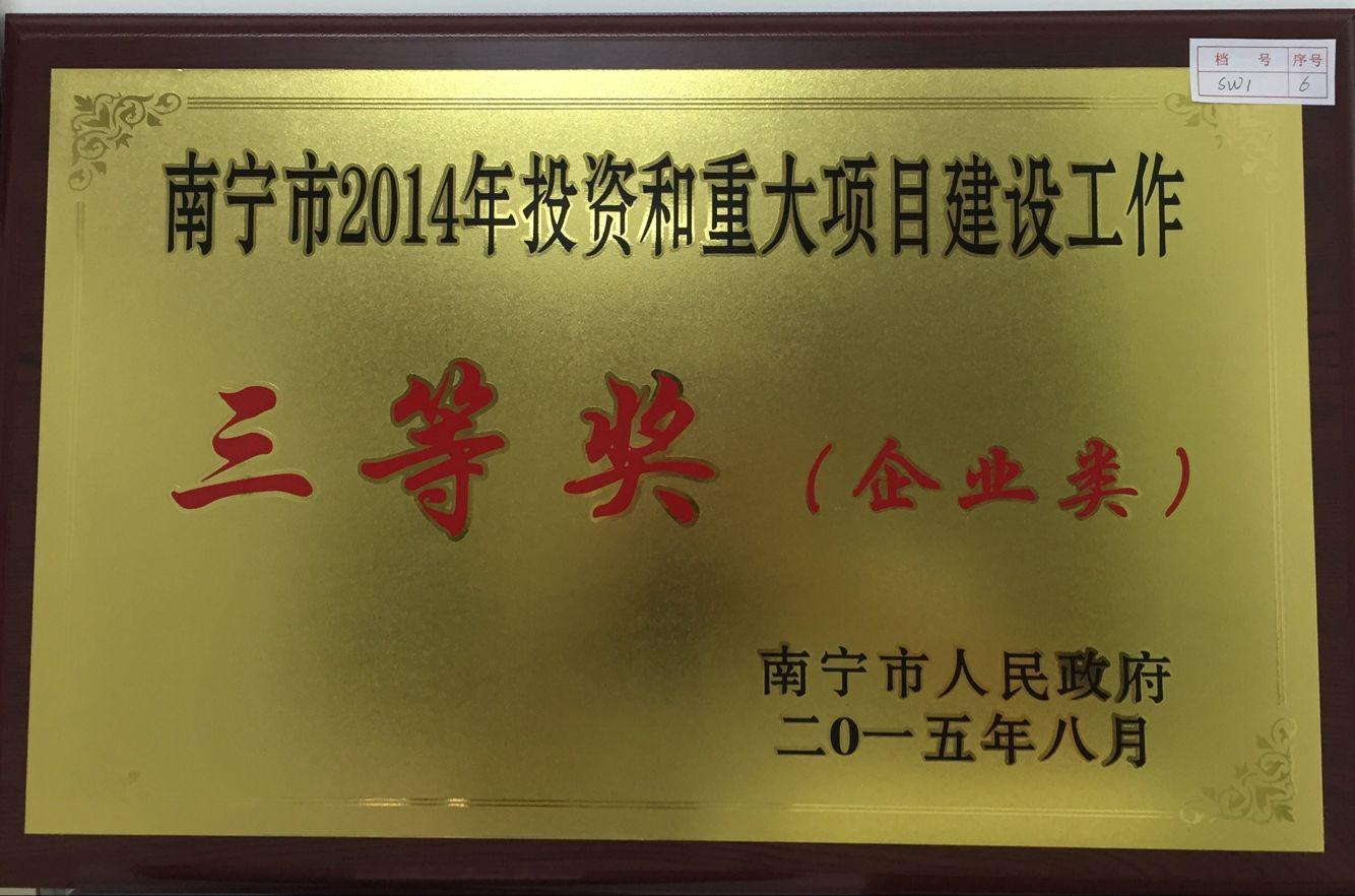 2015年8月30日,威寧投資集團(tuán)獲得南寧市2014年投資和重大項(xiàng)目建設(shè)工作三等獎(jiǎng)