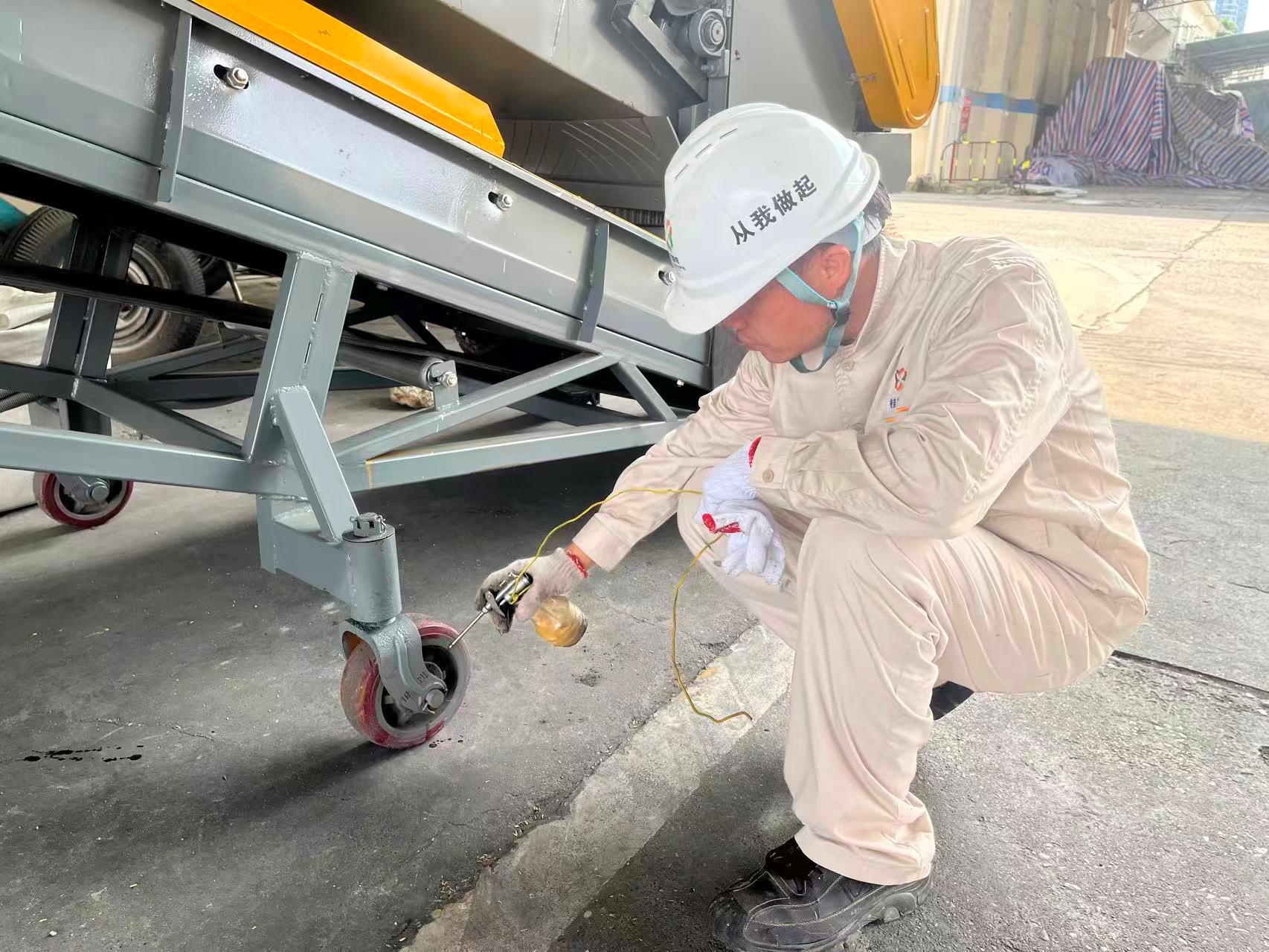 設(shè)備維修人員進行設(shè)備維護保養(yǎng)