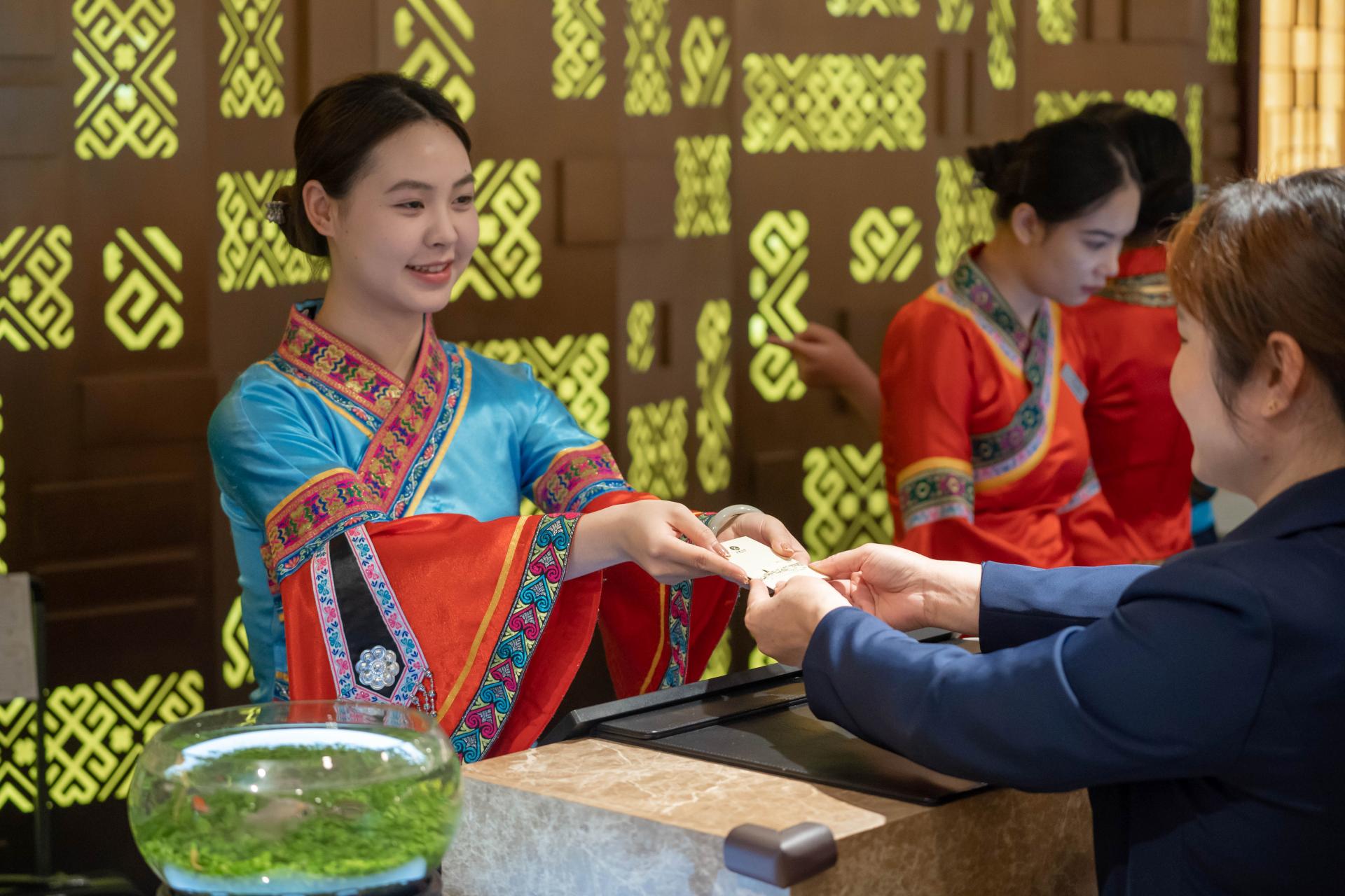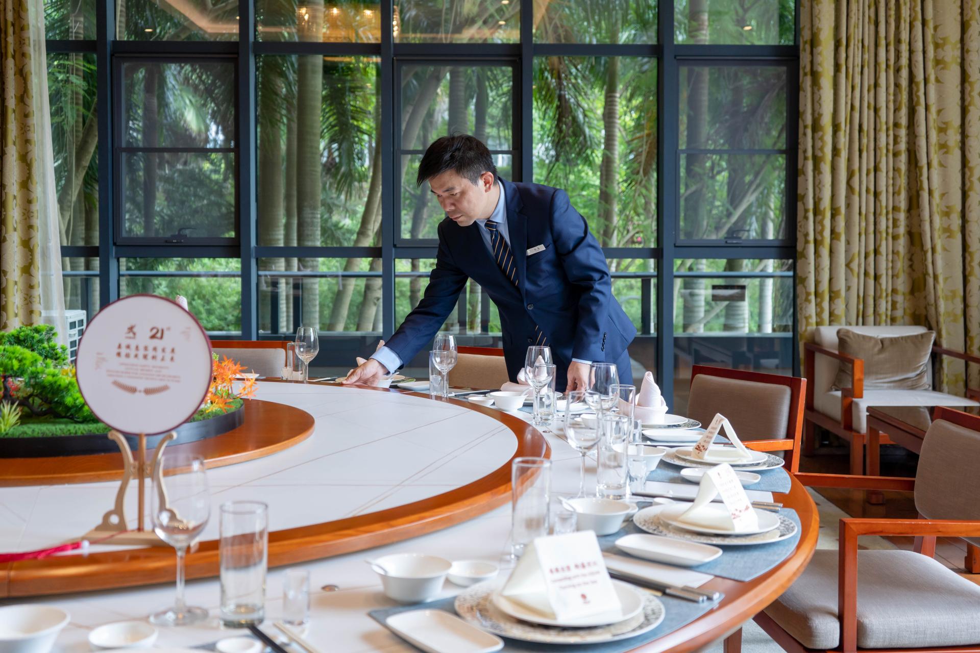 在接待過程中,五象山莊全體員工秉承“超越期望,誠心為您”的服務(wù)理念,以熱情、周到、細(xì)致的態(tài)度為賓客提供溫情備至的客房、餐飲和會議服務(wù)。為了照顧不同國家賓客的信仰及風(fēng)俗習(xí)慣,山莊銷售團(tuán)隊(duì)通過前期與會務(wù)組的充分溝通與了解,組織員工進(jìn)行專項(xiàng)培訓(xùn);客房部為了營造溫馨、舒適、優(yōu)雅的住宿氛圍,對客房進(jìn)行精心布置和美化,一個東博會的主題logo,一句暖心的問候祝福語便讓賓客感受到家的溫馨;餐飲部在餐桌及會場布置方面融入廣西銅鼓、繡球等傳統(tǒng)文化元素,不僅帶給賓客尊貴感和驚喜體驗(yàn)感,同時也讓賓客感受到獨(dú)特而又熱情的壯鄉(xiāng)文化與待客之道;宴會部提供了優(yōu)質(zhì)、專業(yè)的會議服務(wù),確保會議的順利進(jìn)行;工程部隨時配合設(shè)施設(shè)備的維護(hù)及關(guān)鍵機(jī)房不間斷值守;安保部則24小時待命,嚴(yán)密巡查停車場、監(jiān)控中心,指揮停車秩序等,竭力保障住宿、會議場所的安全……這些細(xì)致入微的優(yōu)質(zhì)服務(wù)只為讓各方賓客真實(shí)感受到廣西熱情、周到的服務(wù),也讓每一位入住五象山莊的賓客在下榻期間倍感舒適與享受,留下一段美好的入住體驗(yàn)。