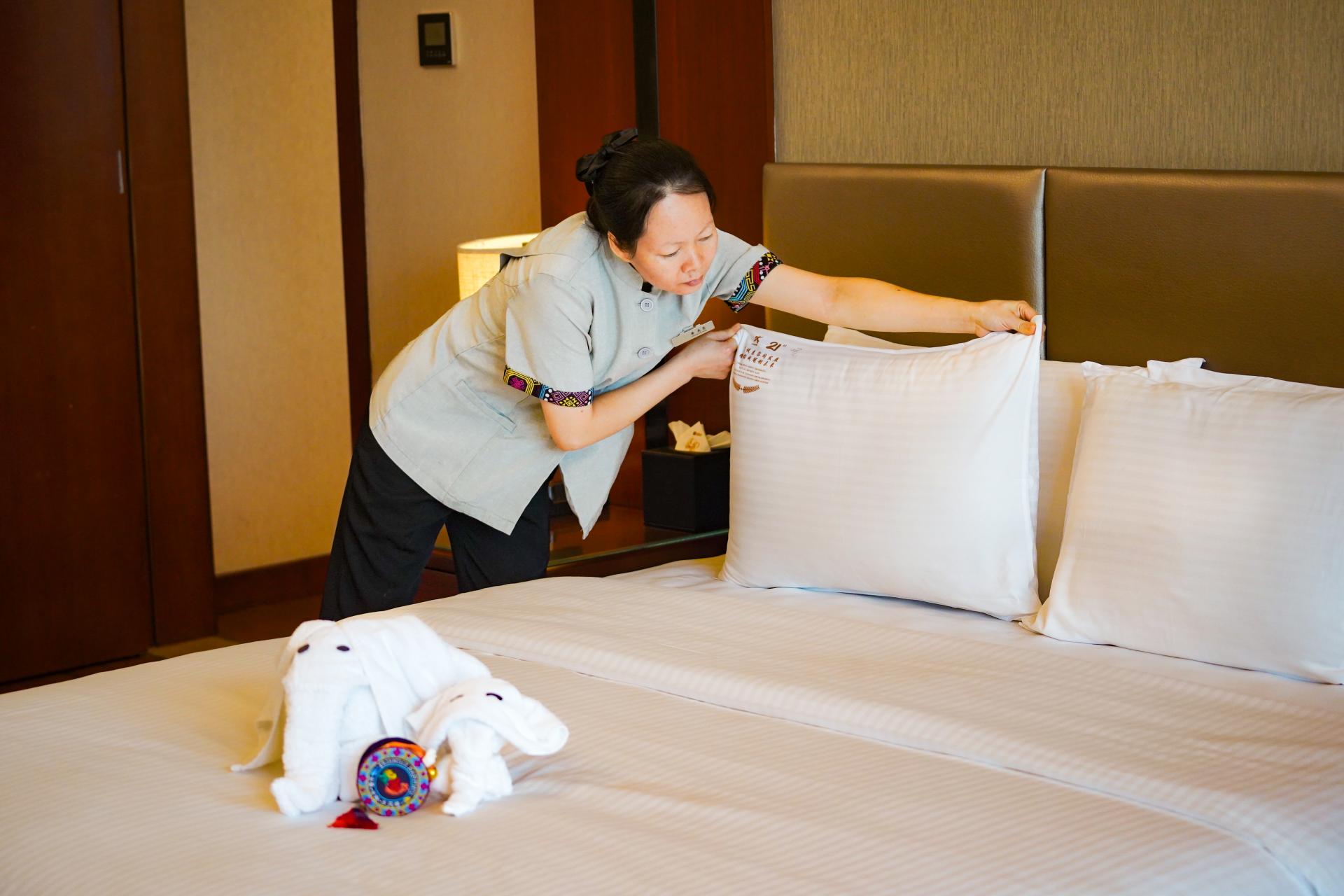 客房服務(wù)溫馨體貼。為保障參會賓客們擁有一個舒適的安睡環(huán)境,山莊客房部提前做好客房衛(wèi)生清潔、消毒和通風(fēng),同時增配不同類型的枕頭,并強(qiáng)化VIP服務(wù),提供24小時管家式服務(wù),與賓客的溝通做到準(zhǔn)確及時,滿足賓客們的個性化需求,讓每位入住的客人感受到尊重和真誠。