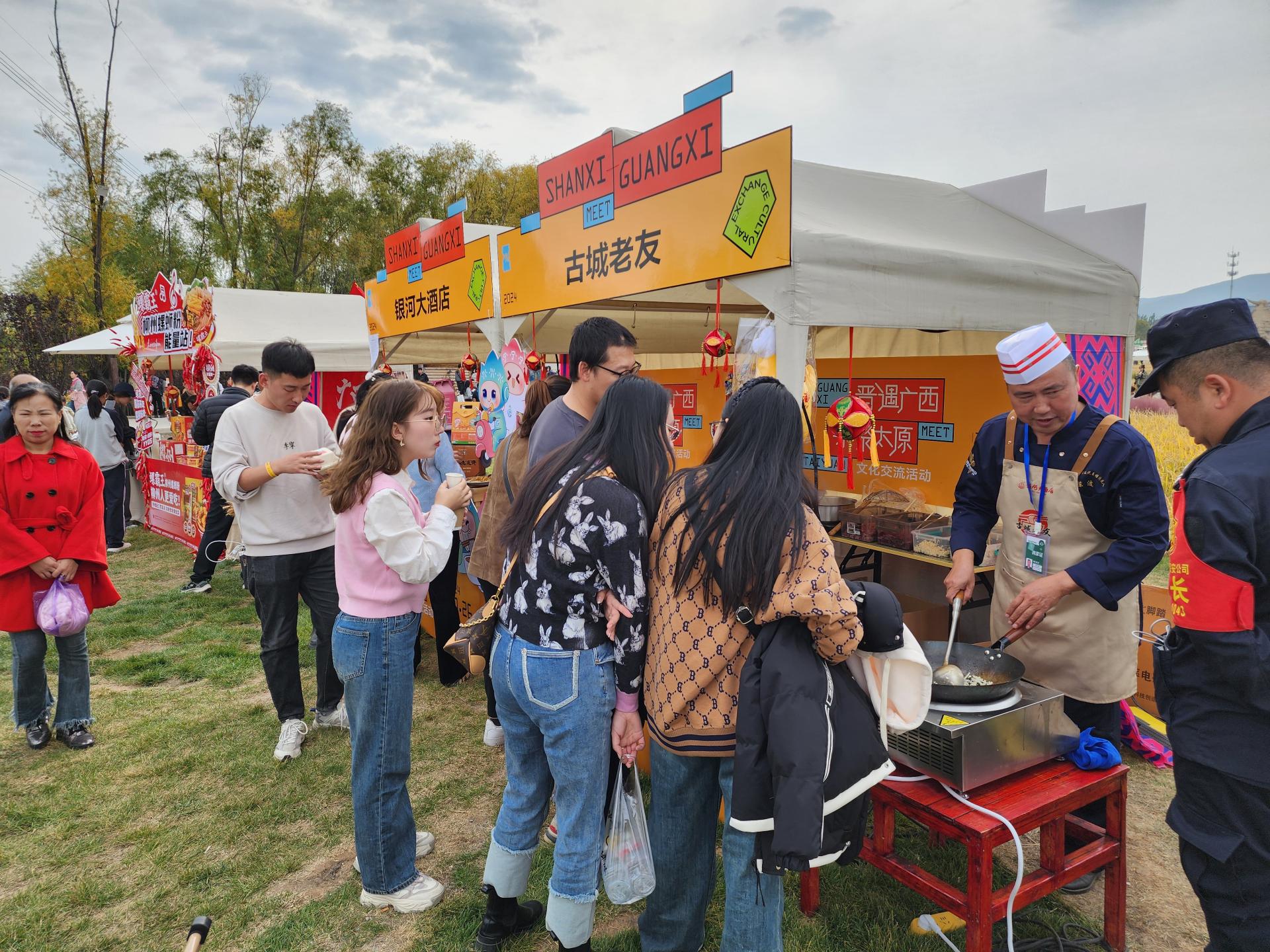 在現(xiàn)場(chǎng)金黃的麥田邊上,銀河大酒店設(shè)立“古城老友”展臺(tái),南寧老友粉市級(jí)代表性傳承人——陳波支起爐灶,為現(xiàn)場(chǎng)市民帶來一場(chǎng)“當(dāng)南寧老友味道遇上山西面食”的美食文化“聯(lián)姻”技藝展示,炒鍋有節(jié)奏地翻動(dòng),散發(fā)出濃濃的香氣,引得過往市民紛紛駐足。“這是我們的‘老友面’,別具特色的南寧老友食材在煙火的爆炒下,與山西面食融合,完美突出了兩地美食的特點(diǎn)”陳波邊烹飪邊向市民介紹道。此次銀河大酒店創(chuàng)新推出“老友味道與山西面食碰撞”產(chǎn)品,為兩地美食文化融合做了大膽嘗試,獲得了活動(dòng)現(xiàn)場(chǎng)食客的追捧。