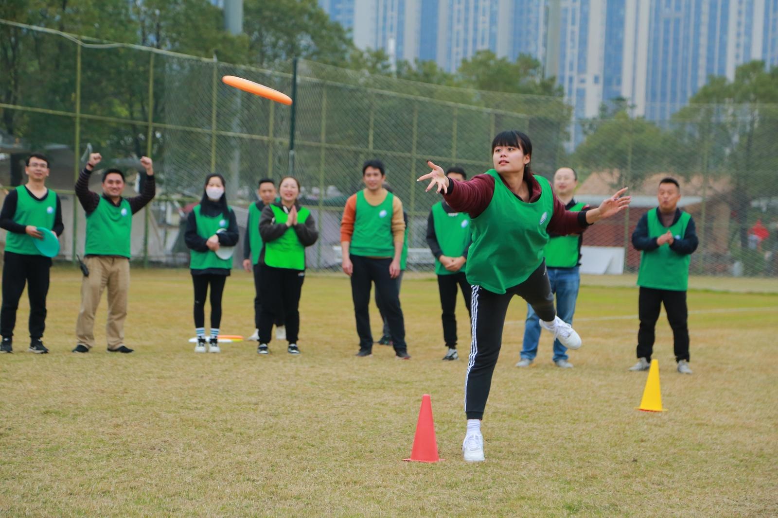 活動(dòng)現(xiàn)場(chǎng),在飛盤運(yùn)動(dòng)專業(yè)教練的指導(dǎo)下,大家完成了飛盤運(yùn)動(dòng)基礎(chǔ)的傳盤、接盤動(dòng)作學(xué)習(xí)和練習(xí),并按男女生合適比例隨機(jī)劃分為四組進(jìn)行飛盤比賽項(xiàng)目比拼。分組對(duì)抗賽設(shè)置了飛盤接飛、飛盤爭(zhēng)奪、飛盤保齡球、飛盤目標(biāo)網(wǎng)、飛盤九宮格及飛盤高爾夫等六個(gè)項(xiàng)目,集趣味性、娛樂性、協(xié)作性和競(jìng)爭(zhēng)性于一體,既是力量的角逐,又是智慧的較量;既是體育競(jìng)技水平的展示,又是對(duì)團(tuán)隊(duì)協(xié)作能力的檢驗(yàn)。比賽持續(xù)進(jìn)行了兩個(gè)多小時(shí),場(chǎng)面熱鬧而井然有序,掌聲、歡呼聲此起彼伏,參賽人員朝氣蓬勃、奮發(fā)向上,參賽團(tuán)隊(duì)團(tuán)結(jié)合作、互幫互助的精神風(fēng)貌得到了充分展現(xiàn)。意猶未盡的喜悅洋溢在大家的臉上。