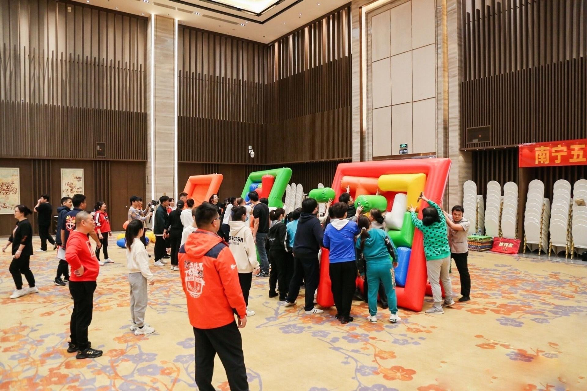 基業(yè)長(zhǎng)青、飛盤嘉年華、俄羅斯方塊、使命必達(dá)……近日,在五象山莊11號(hào)樓大宴會(huì)廳,一場(chǎng)以“團(tuán)結(jié)奮斗,超越期望”為主題的團(tuán)建活動(dòng)現(xiàn)場(chǎng)如火如荼,五象山莊公司共160多名職工踴躍參與。