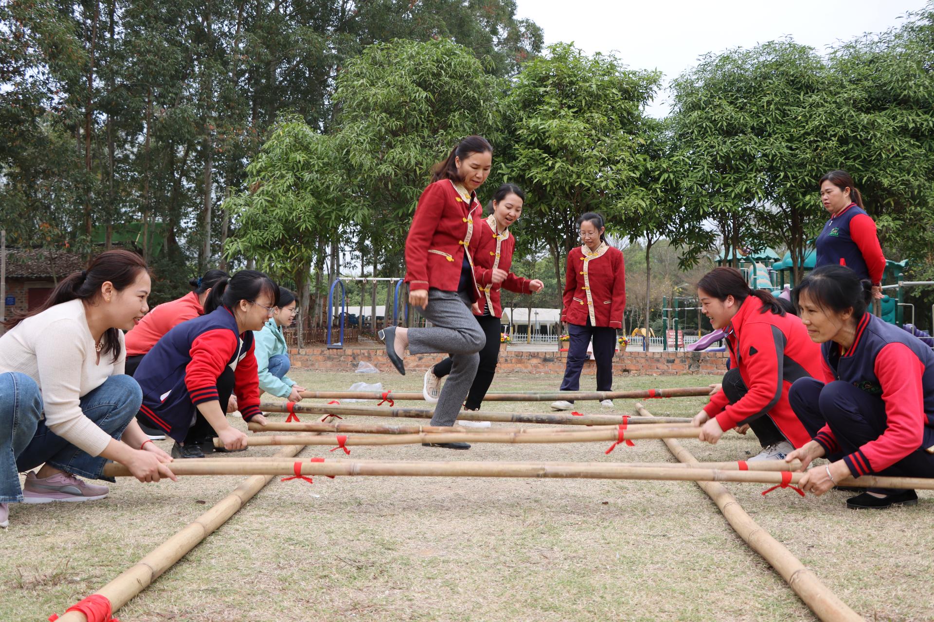 生態(tài)園公司組織女職工跳竹竿舞
