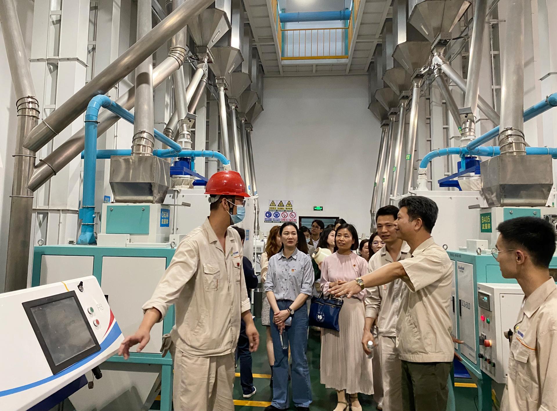 公司機(jī)關(guān)第一黨支部黨員在五象糧庫(kù)工作人員的引領(lǐng)下,先后深入五象糧庫(kù)油脂車間生產(chǎn)線、大米車間生產(chǎn)線、倉(cāng)儲(chǔ)科成品倉(cāng)等區(qū)域參觀學(xué)習(xí)。在濃郁的稻香中,細(xì)致、全面地了解儲(chǔ)備糧糧油儲(chǔ)存、大米加工及油脂灌裝業(yè)務(wù)的全過(guò)程,近距離體會(huì)“寧流千滴汗,不壞一粒糧”的匠心精神。