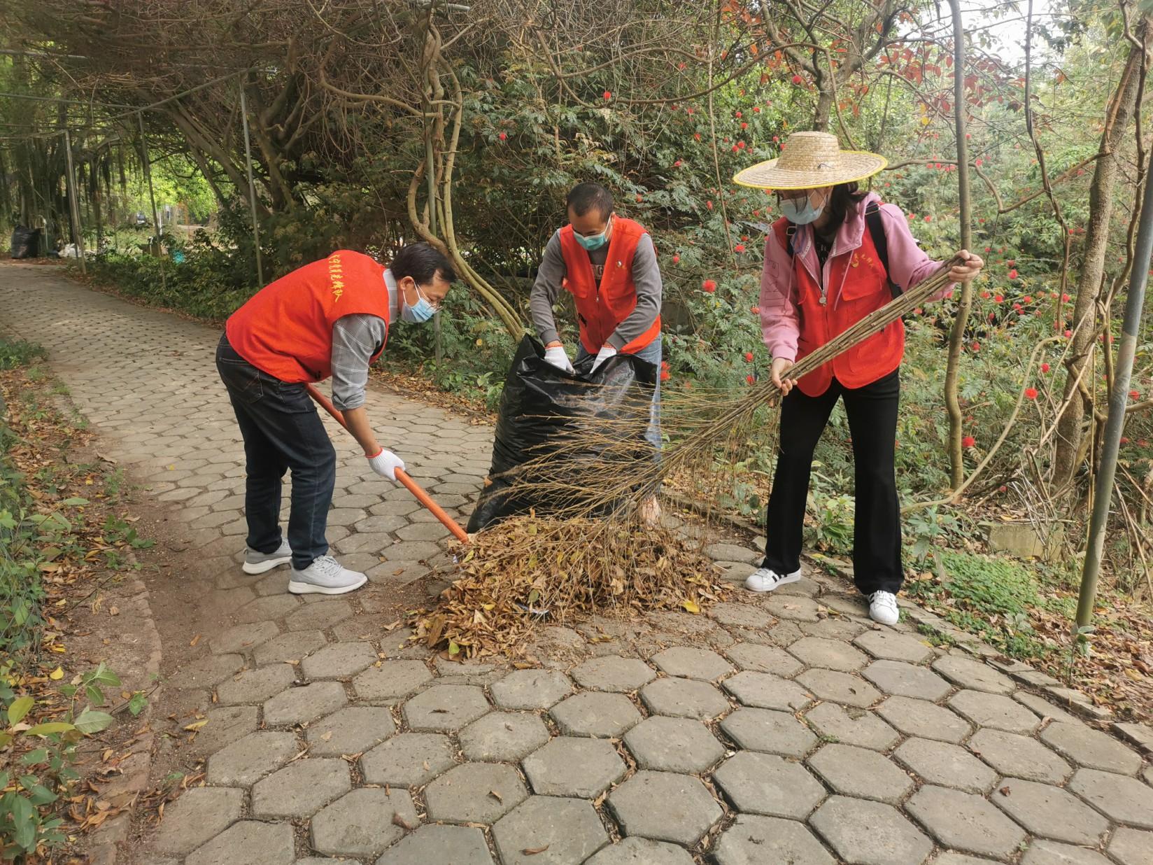 在簡(jiǎn)短的“鼓勁儀式”之后,黨員志愿者們身著紅馬甲、手持掃把等勞動(dòng)工具,在負(fù)責(zé)人的帶領(lǐng)下,以飽滿的狀態(tài)投入到志愿服務(wù)活動(dòng)中。活動(dòng)現(xiàn)場(chǎng)采取分片包干的形式,兵分五路對(duì)園區(qū)主干道、魚(yú)塘、停車(chē)場(chǎng)、客房及周邊的區(qū)域開(kāi)展落葉清掃、拾撿垃圾、衛(wèi)生死角清理等工作。