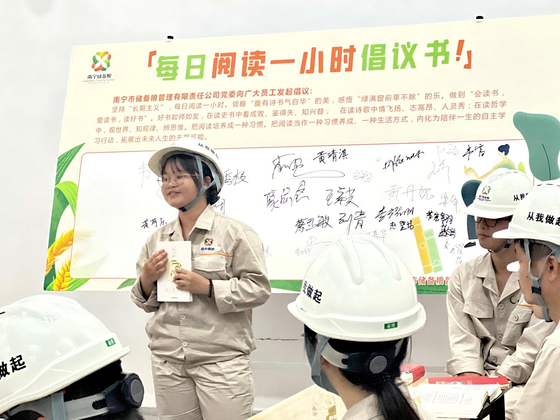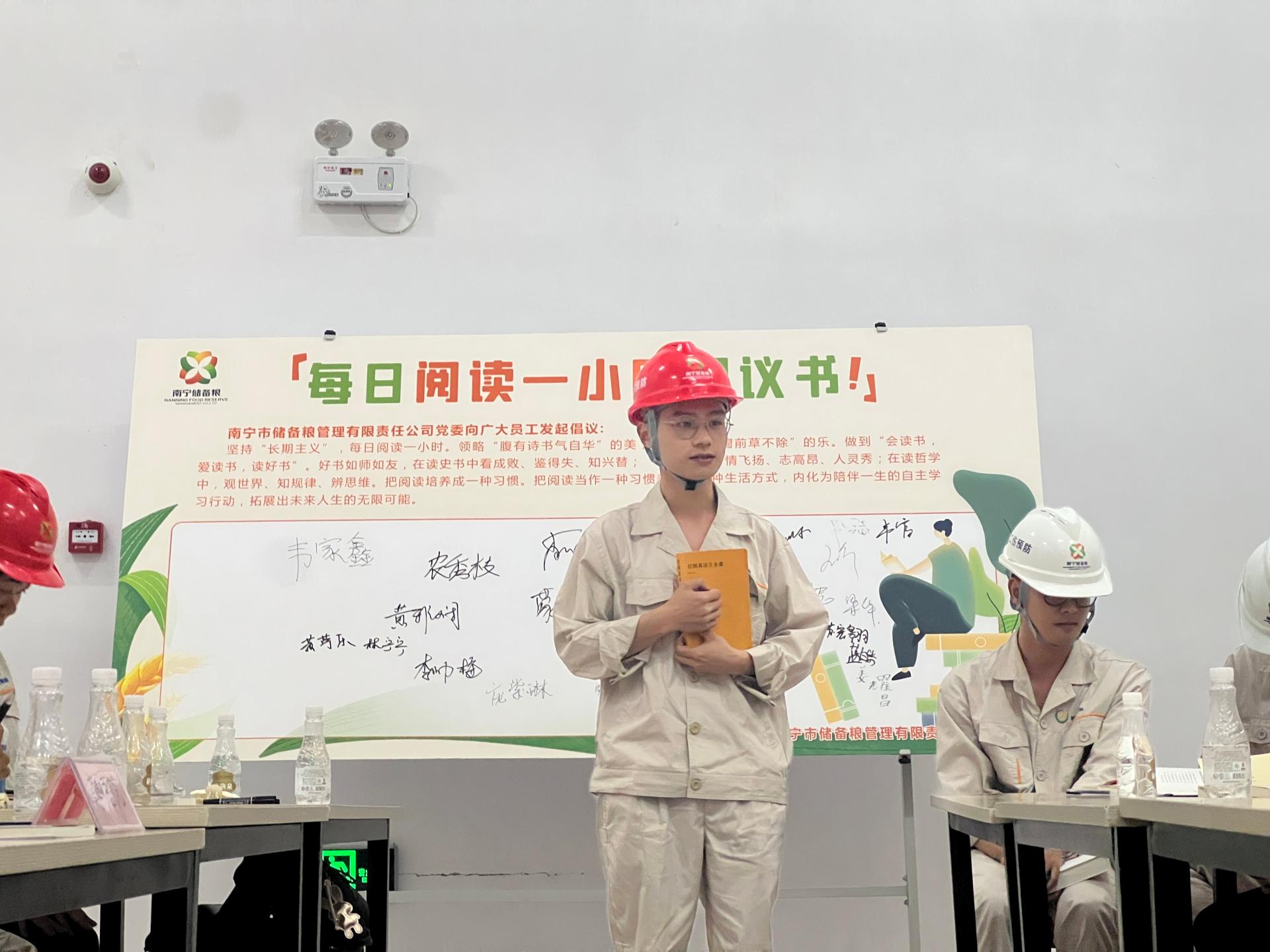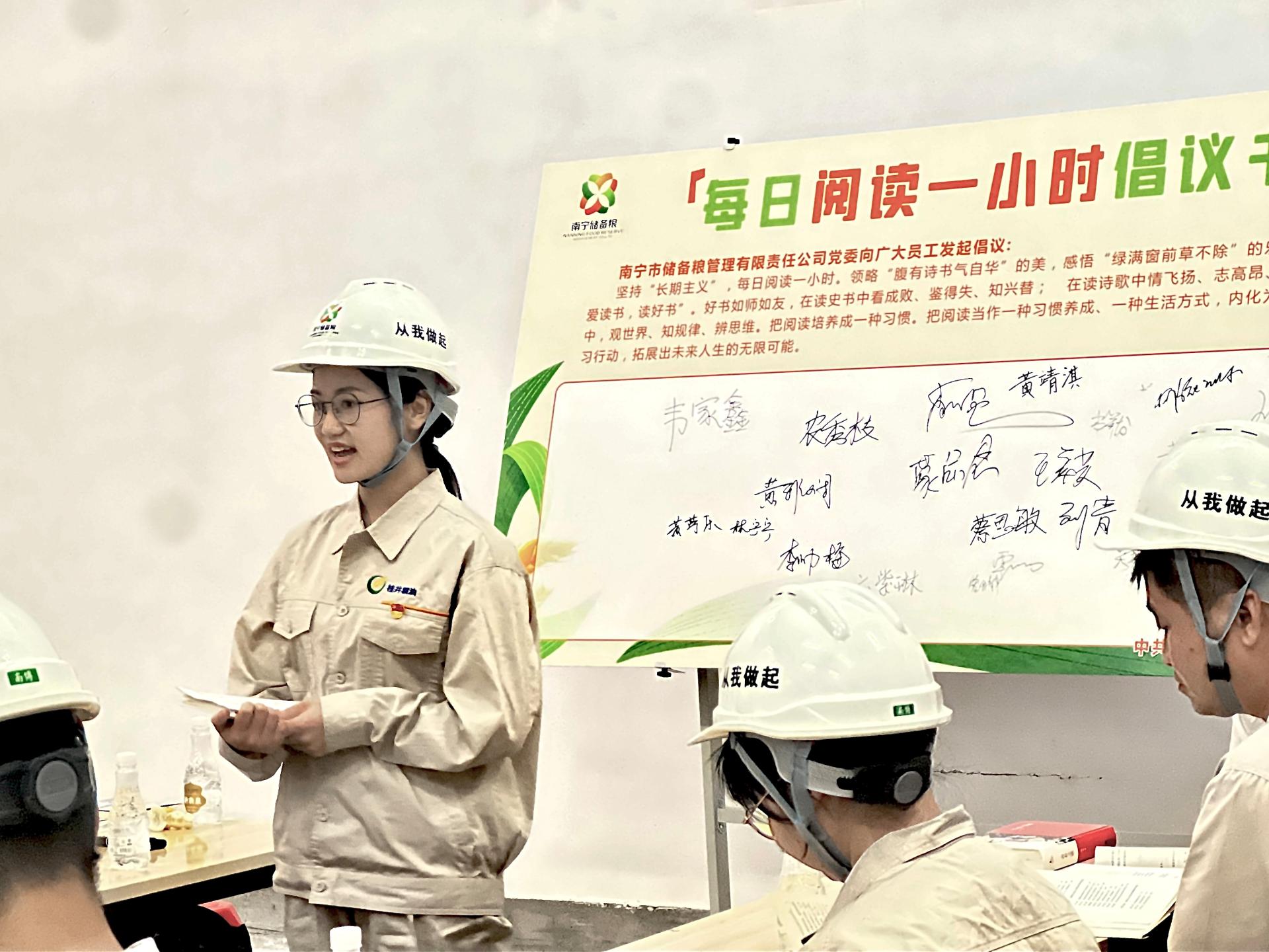 倉(cāng)守優(yōu)糧萬(wàn)家寧,胸藏文墨建新功。為深入貫徹落實(shí)黨的二十大精神,營(yíng)造公司全體黨員職工形成“會(huì)讀書(shū)、愛(ài)讀書(shū)、讀好書(shū)”的良好氛圍,2023年5月31日,儲(chǔ)備糧公司黨委在五象糧庫(kù)成品倉(cāng)舉辦“書(shū)香飄糧倉(cāng)、建功傳萬(wàn)代”讀書(shū)分享活動(dòng)。