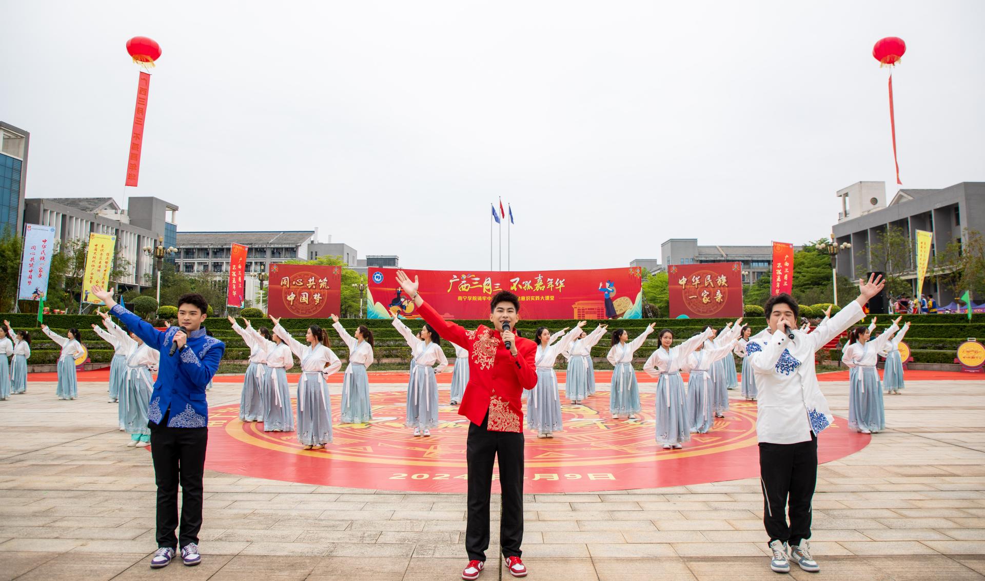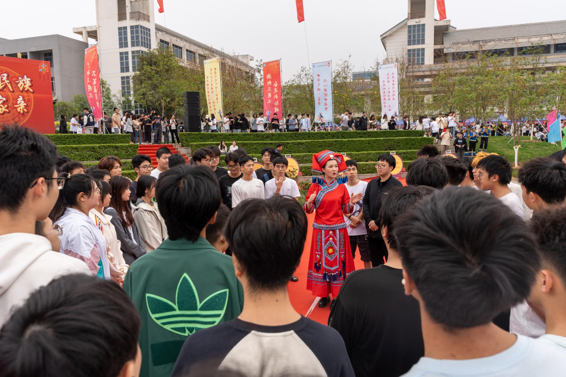 學(xué)校圖書館報告廳里,500余名師生正在聆聽由廣西民族大學(xué)民族研究中心主任、廣西民間文藝家協(xié)會主席李富強教授作《交流與交融:廣西民族文化融匯于中華文化的歷史圖景》主題報告。報告廳外,在不孤湖對歌臺、圖書館前孔子像旁,馬克思主義學(xué)院韋勝強、劉珍珍、盧詩杰、洪潤文等老師為《中華優(yōu)秀傳統(tǒng)文化》《壯美廣西民族團結(jié)新體驗》等課程的學(xué)生帶來行走的思政課,向?qū)W生們介紹少數(shù)民族地區(qū)傳統(tǒng)文化。學(xué)校聚焦民族團結(jié)“大思政”的矩陣和模式,強化理論“主課堂”,深化育人“專課堂”,延伸日?!叭n堂”,善用實踐“大課堂”,打好培根鑄魂“組合拳”,寫好立德樹人“大文章”。不孤嘉年華將德智體美勞五個教育專題融入其中,是充分利用校內(nèi)育人資源開展課堂教學(xué)的重要組成部分,也是學(xué)校豐富校園文化活動形式,實施“五育并舉”協(xié)同育人實踐,鑄牢中華民族共同體意識的重要舉措。
