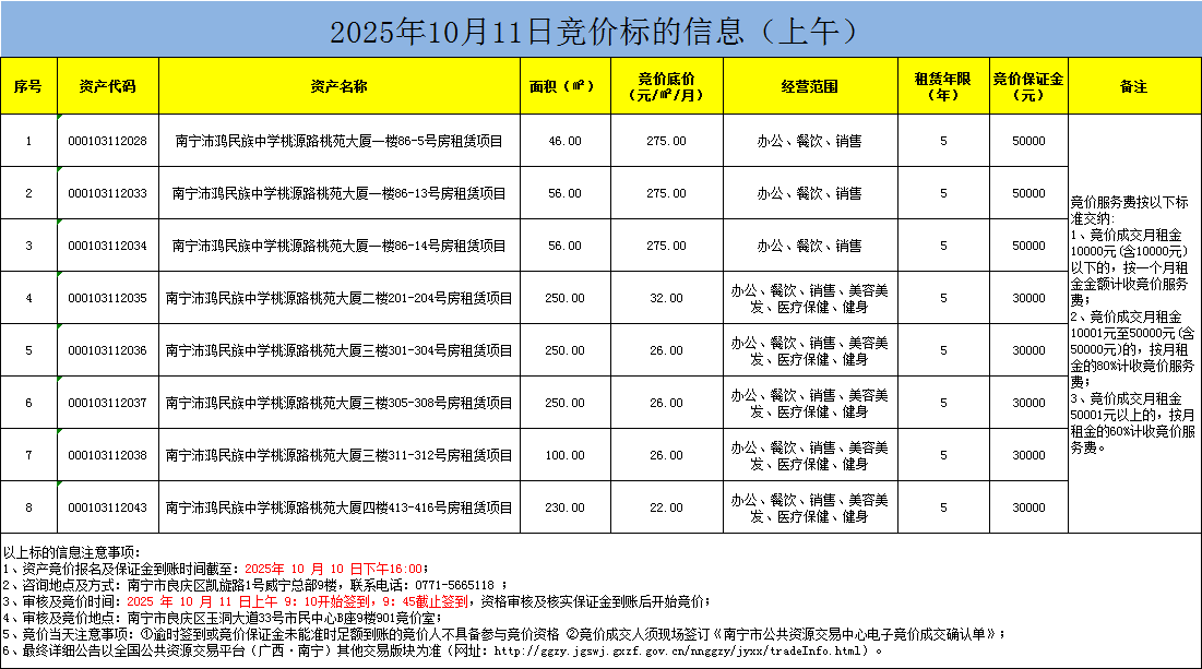 2025年10月11日競價標(biāo)的信息(現(xiàn)場競價)