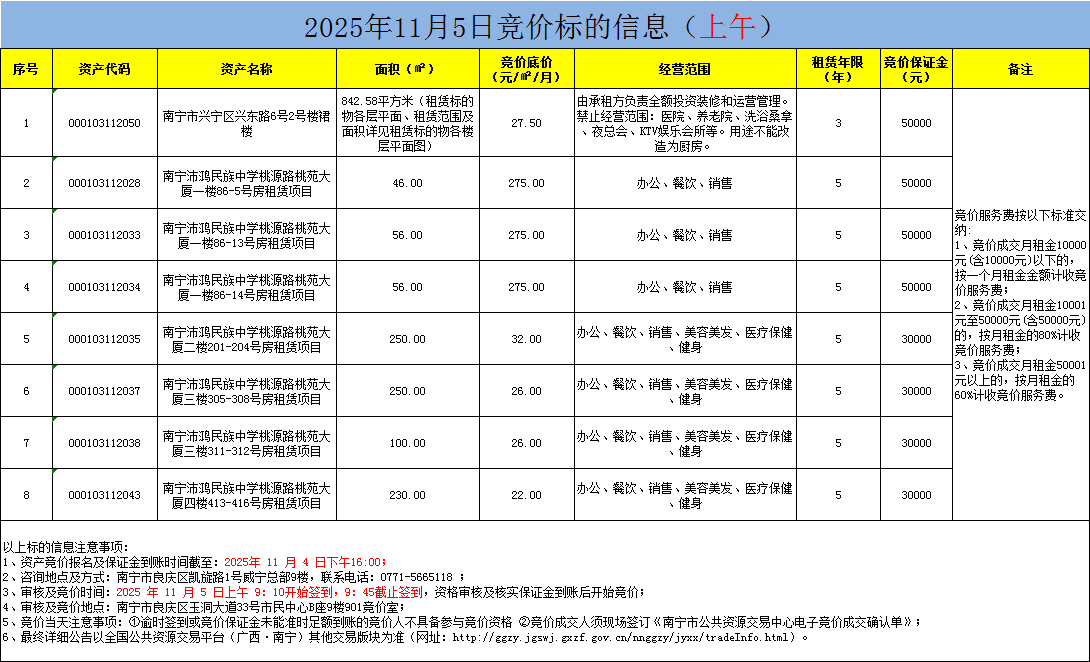 2025年11月5日競價標(biāo)的信息(現(xiàn)場競價)