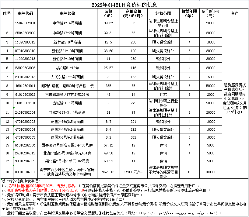 威寧資產(chǎn)公司2022年6月21日公開競價(jià)標(biāo)的信息