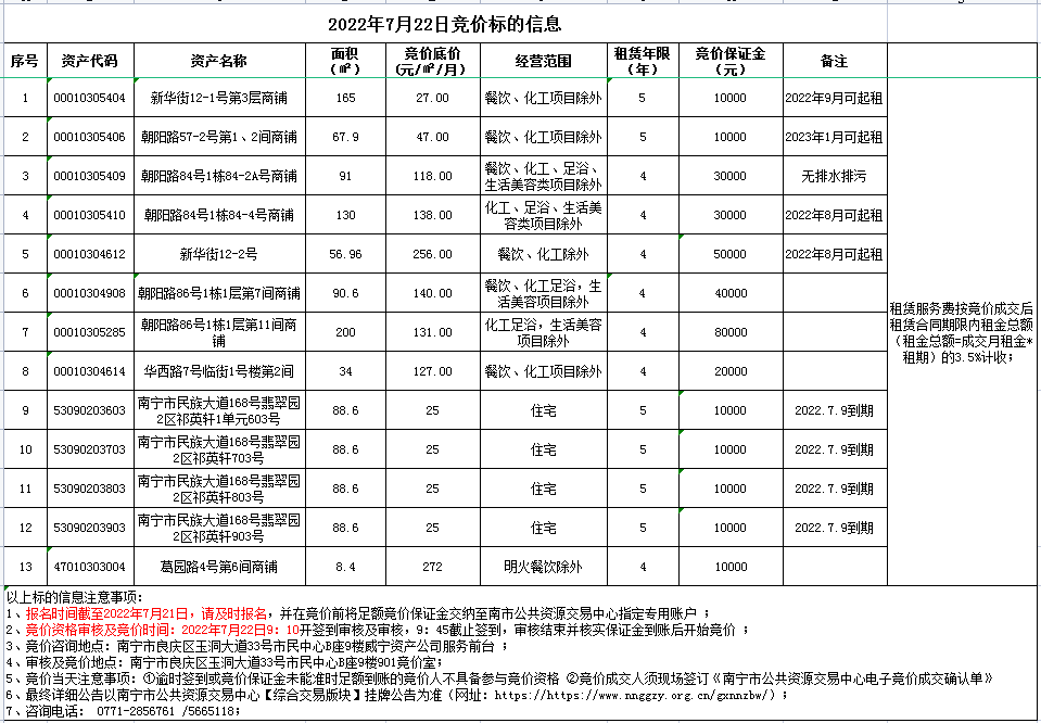 威寧資產(chǎn)公司2022年7月22日公開競(jìng)價(jià)標(biāo)的信息
