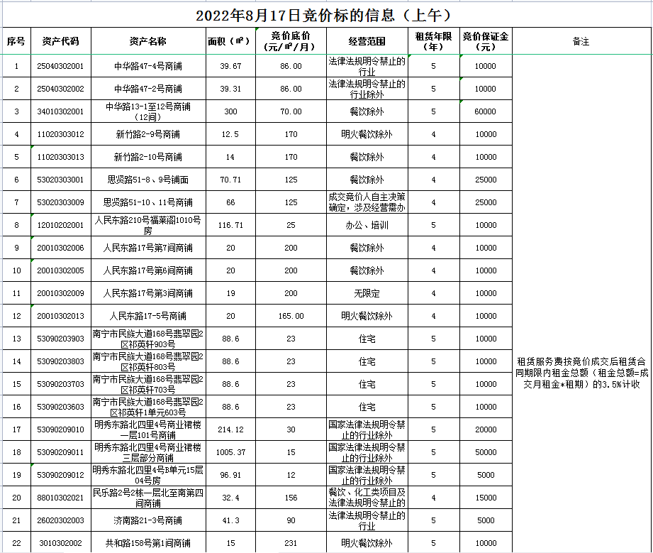威寧資產(chǎn)公司2022年8月17日公開競價(jià)標(biāo)的信息