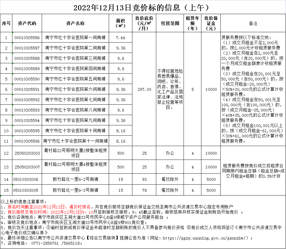 2022年12月13日競(jìng)價(jià)標(biāo)的信息