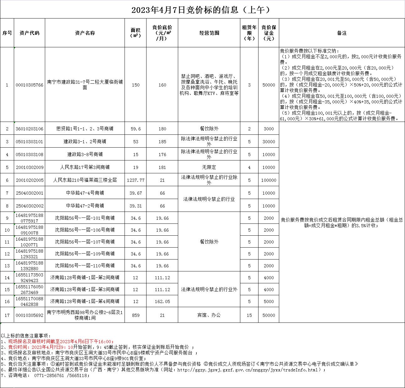 2023年4月7日競(jìng)價(jià)標(biāo)的信息