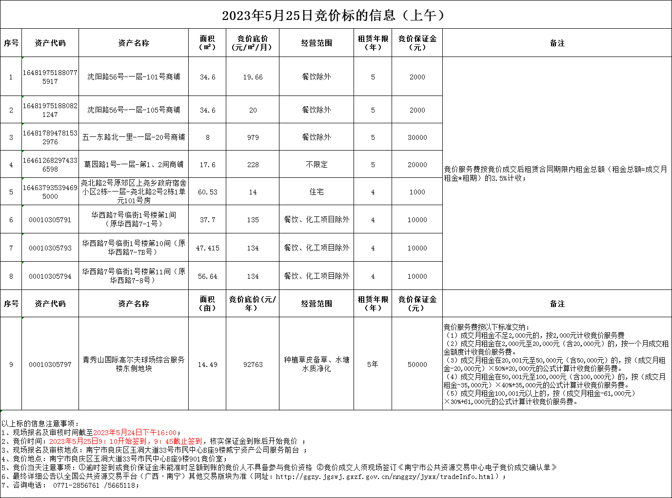 2023年5月25日競(jìng)價(jià)標(biāo)的信息