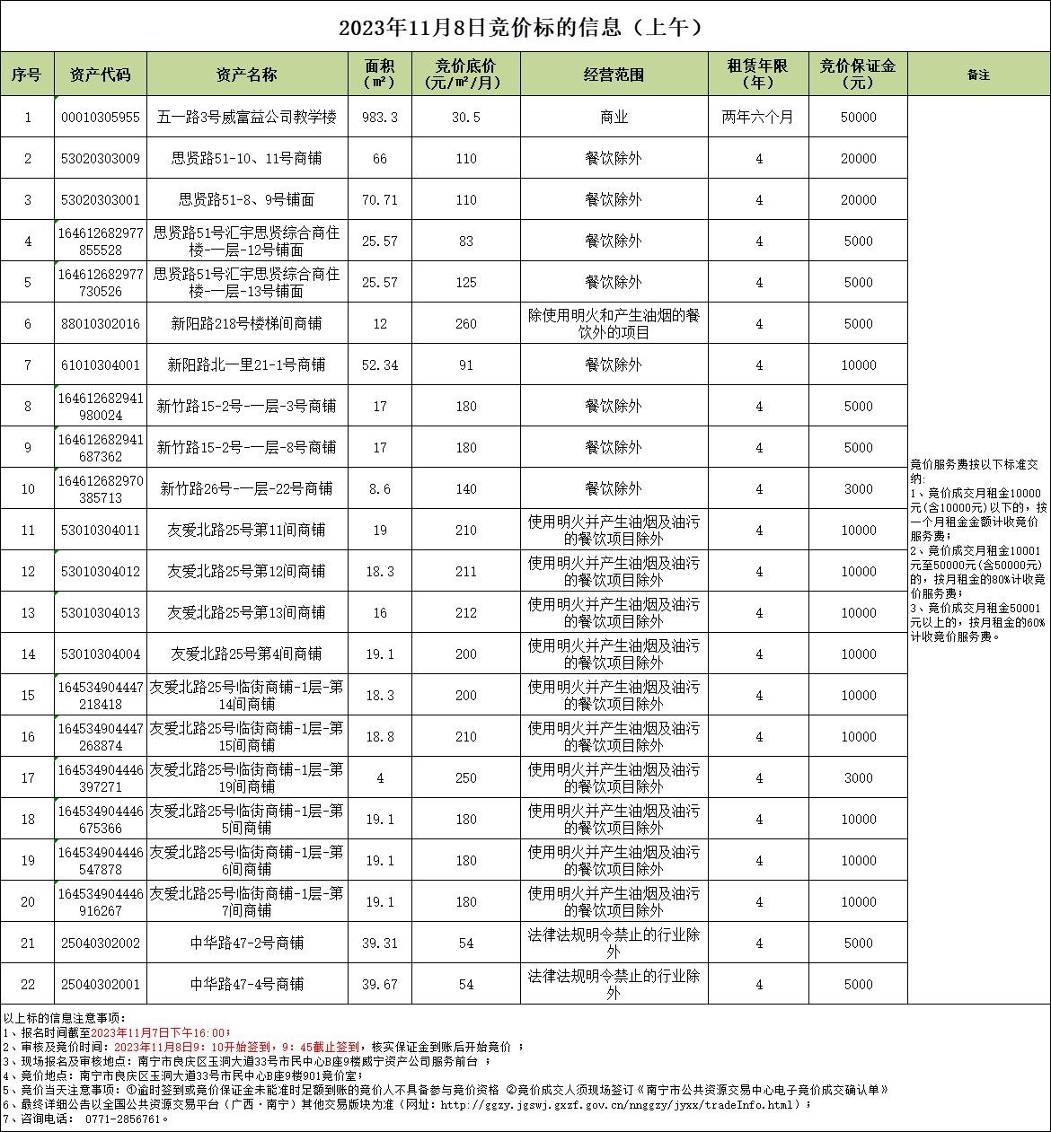 2023年11月8日競(jìng)價(jià)標(biāo)的信息