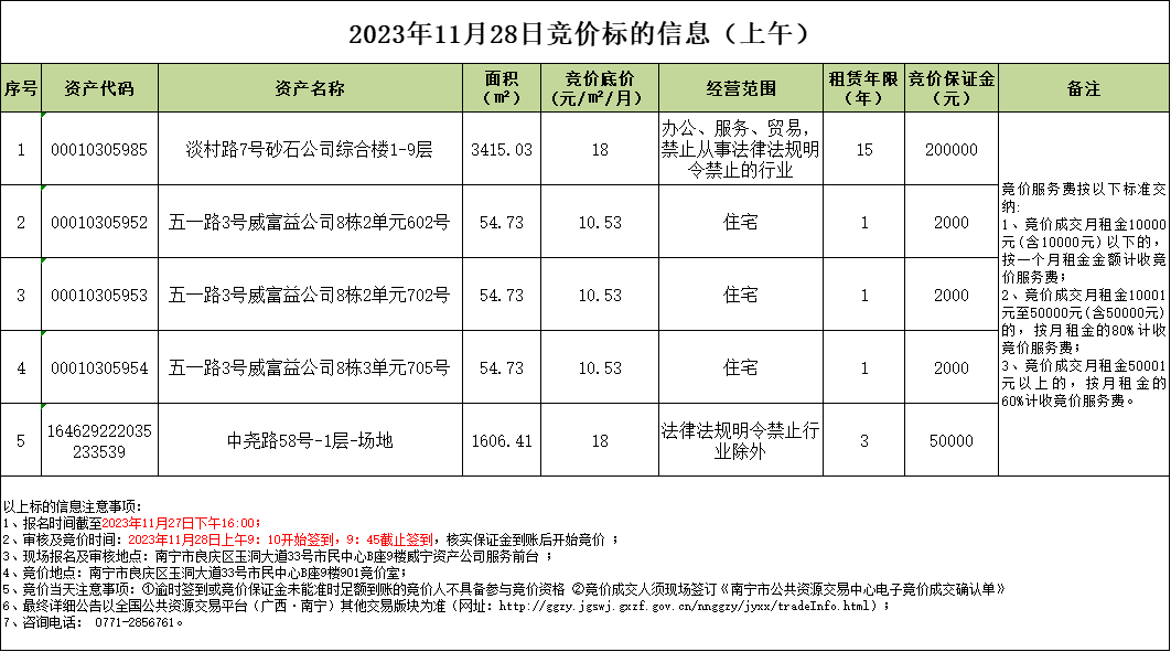 2023年11月28日競價標(biāo)的信息