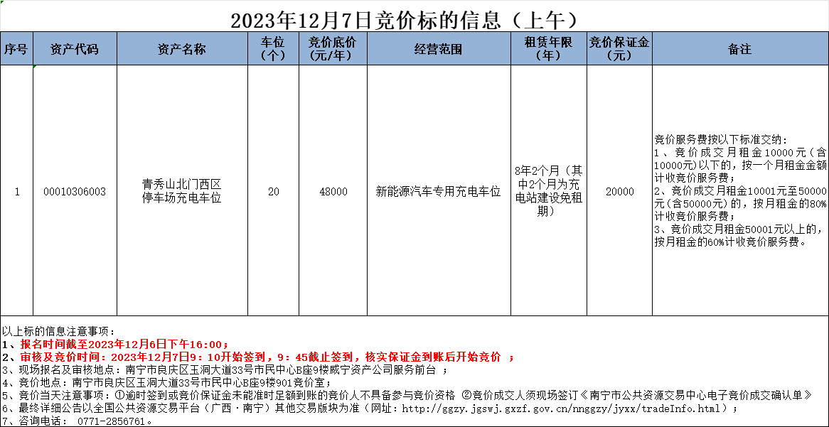 2023年12月7日競價標的信息
