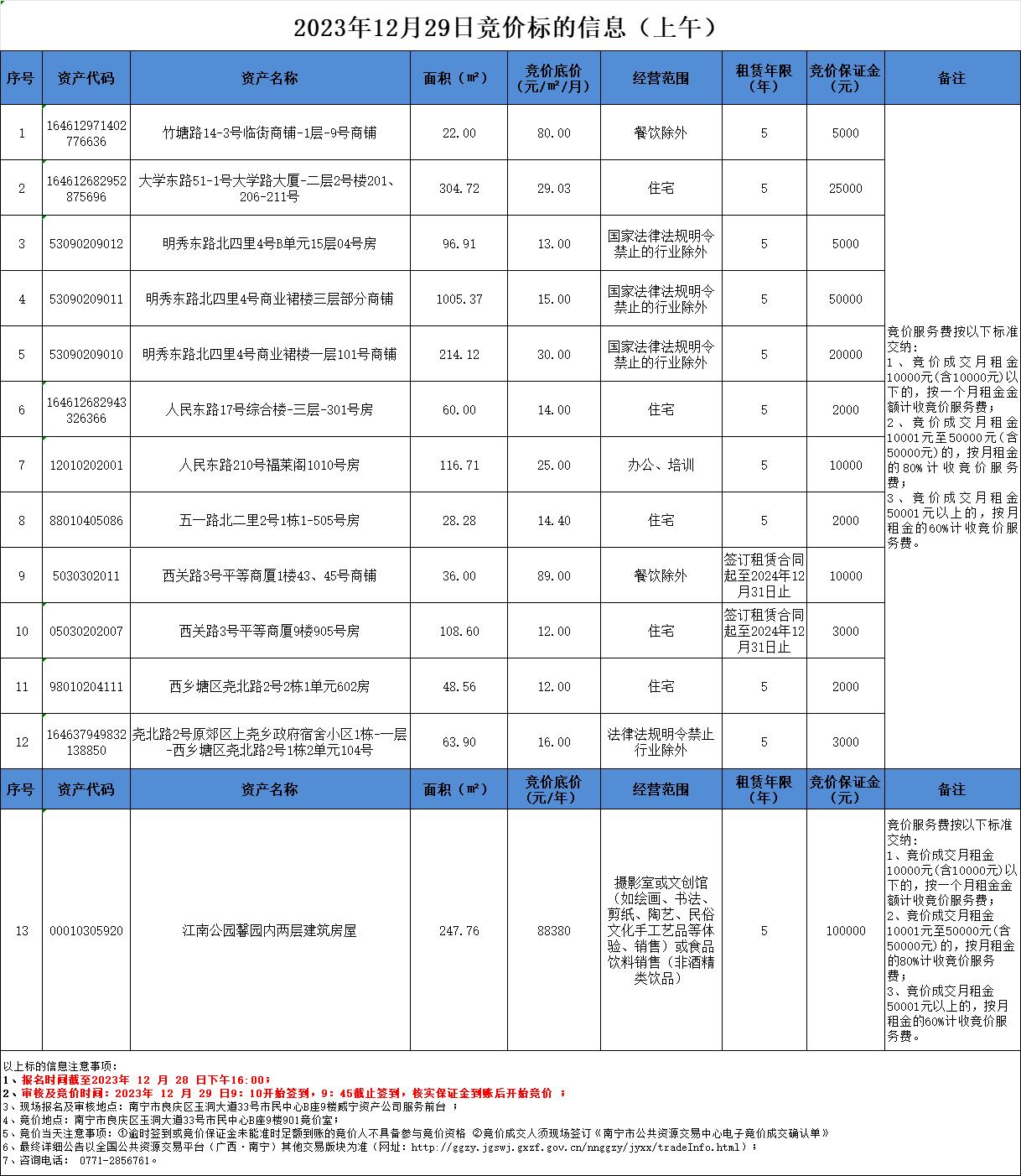 2023年12月29日競價(jià)標(biāo)的信息