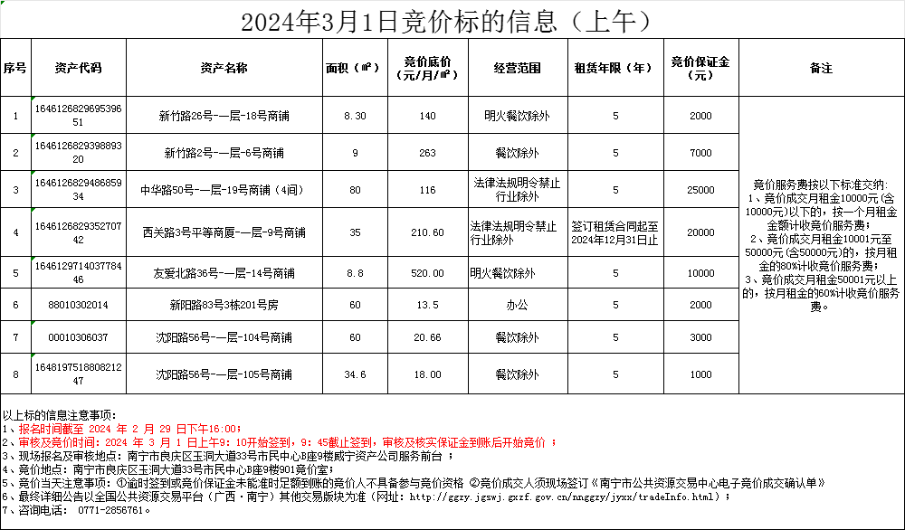 2024年3月1日競價標的信息