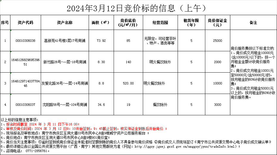 2024年3月12日競價標(biāo)的信息(現(xiàn)場競價)